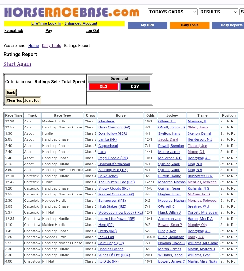 Top speed rated for Friday 18/12/2022⏱️👀🏇