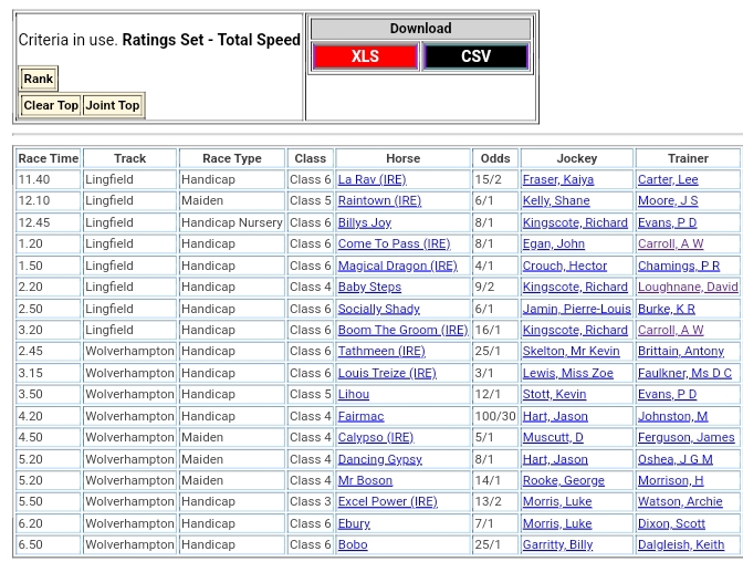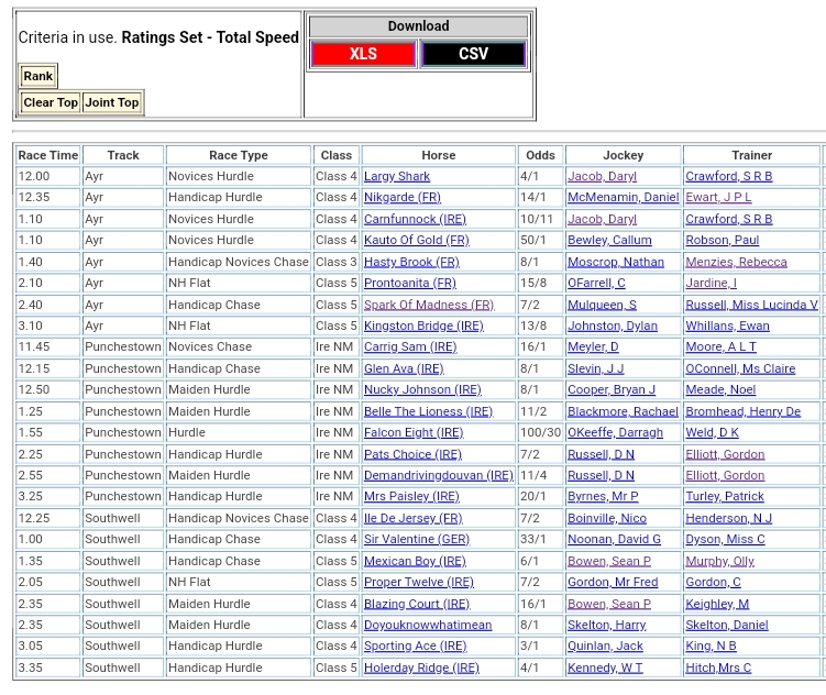 Top speed rated for tomorrow’s meetings 29/11/2022⏱️👀🏇