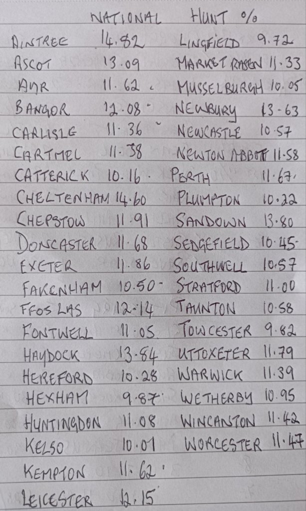Aintree, Cheltenham, Haydock, Newbury Sandown and Ascot produced the highest percentage of next time out winners.