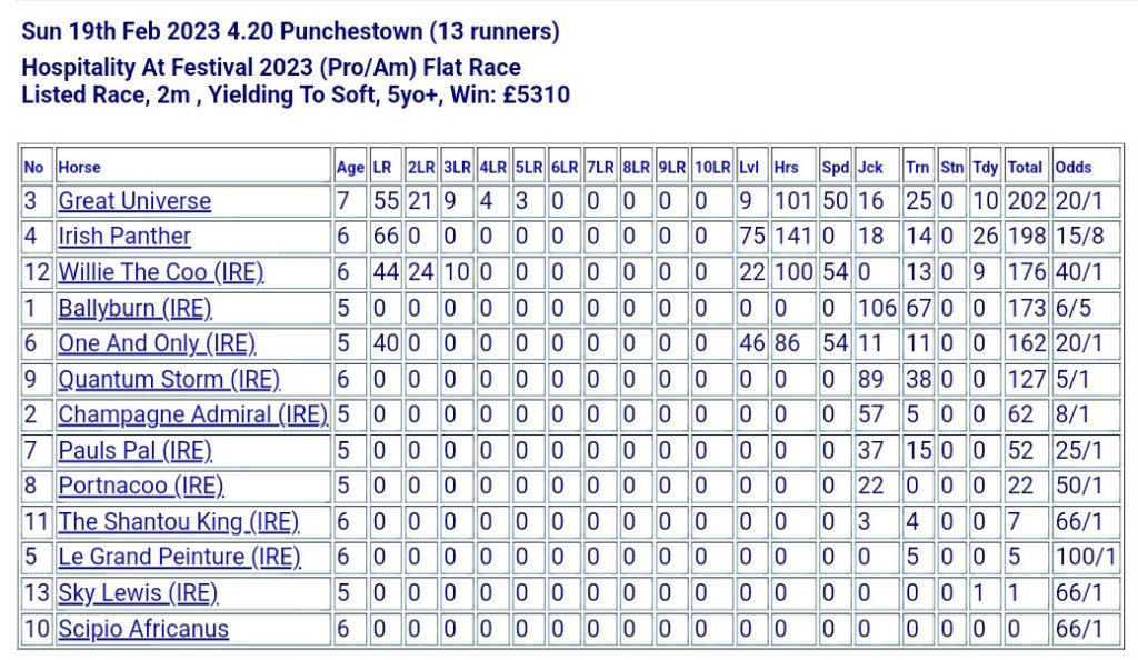 Rankings For Today’s Meeting At Punchestown.
