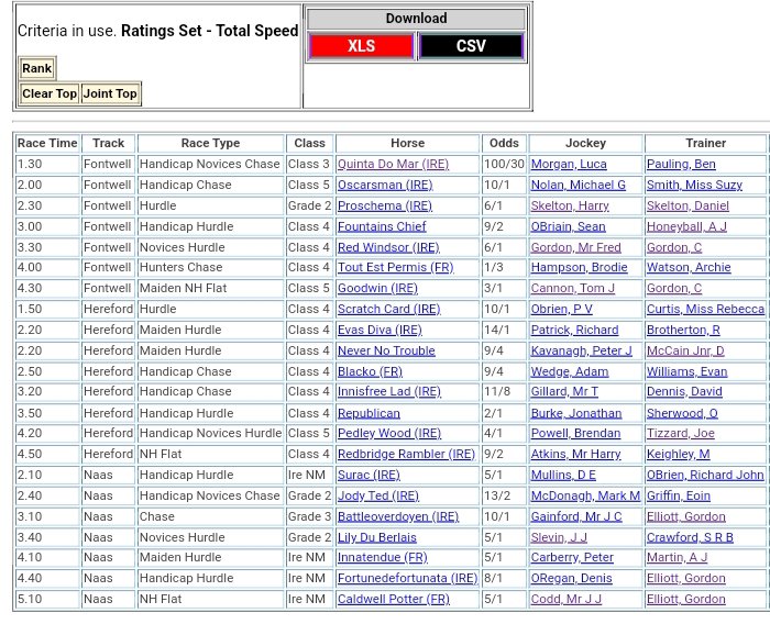 Top Speed Rated for Sunday’s meetings ⏱️