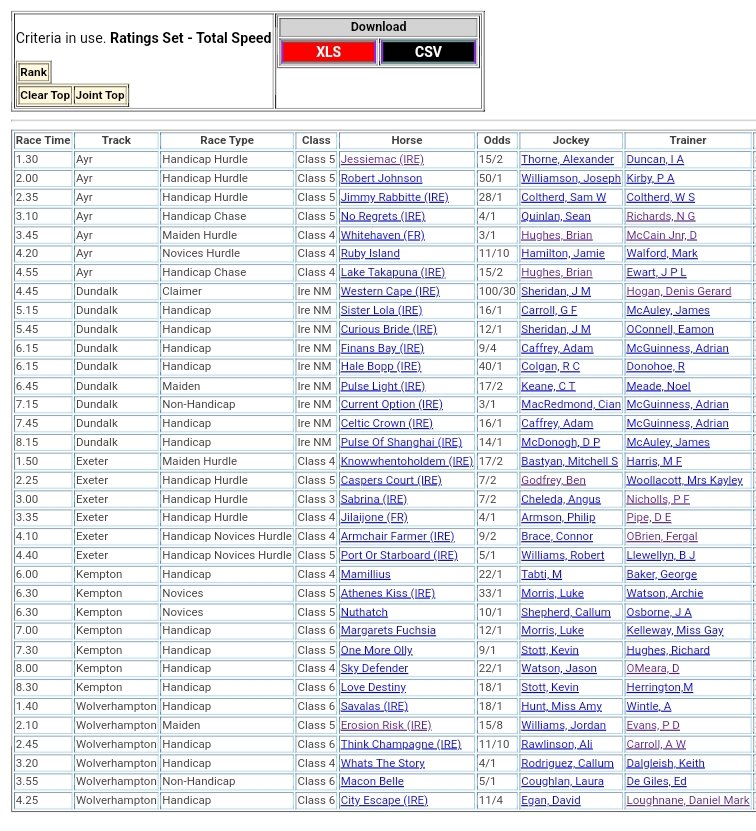 Top Speed Rated for today’s meetings ⏱️