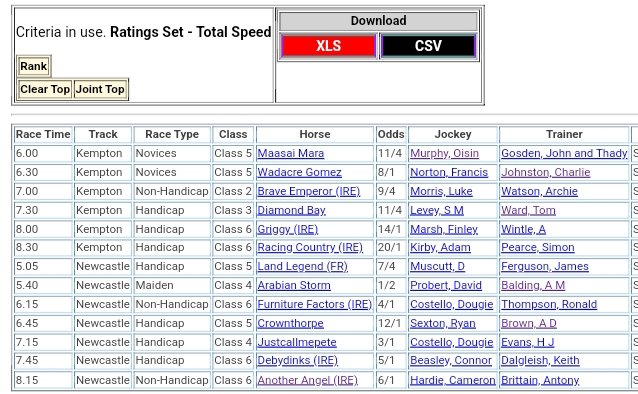 Top Speed Rated for Wednesday’s meetings ⏱️