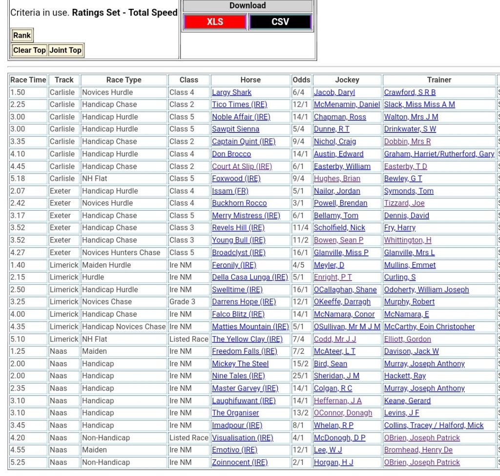 Top Speed Rated for Sunday’s meetings ⏱️