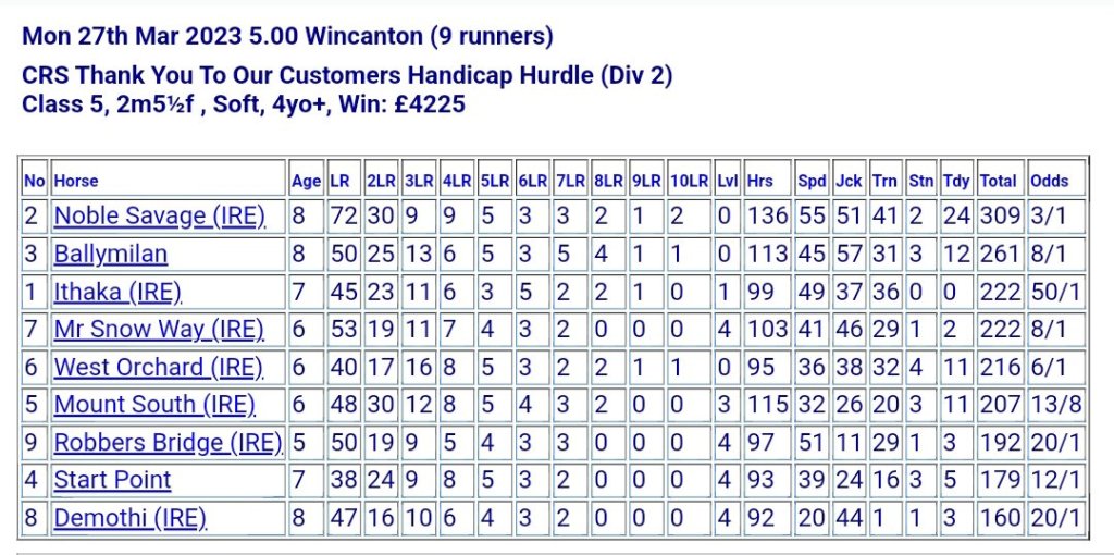 - Ithaka: Ex-Irish maiden with little achieved in three handicaps for new stable. A 125-1 shot dropped to this grade latest, best watched unless the market suggests improvement is expected. Fair odds: 33/1.