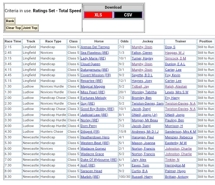 Top Speed Rated for Monday’s meetings ⏱️