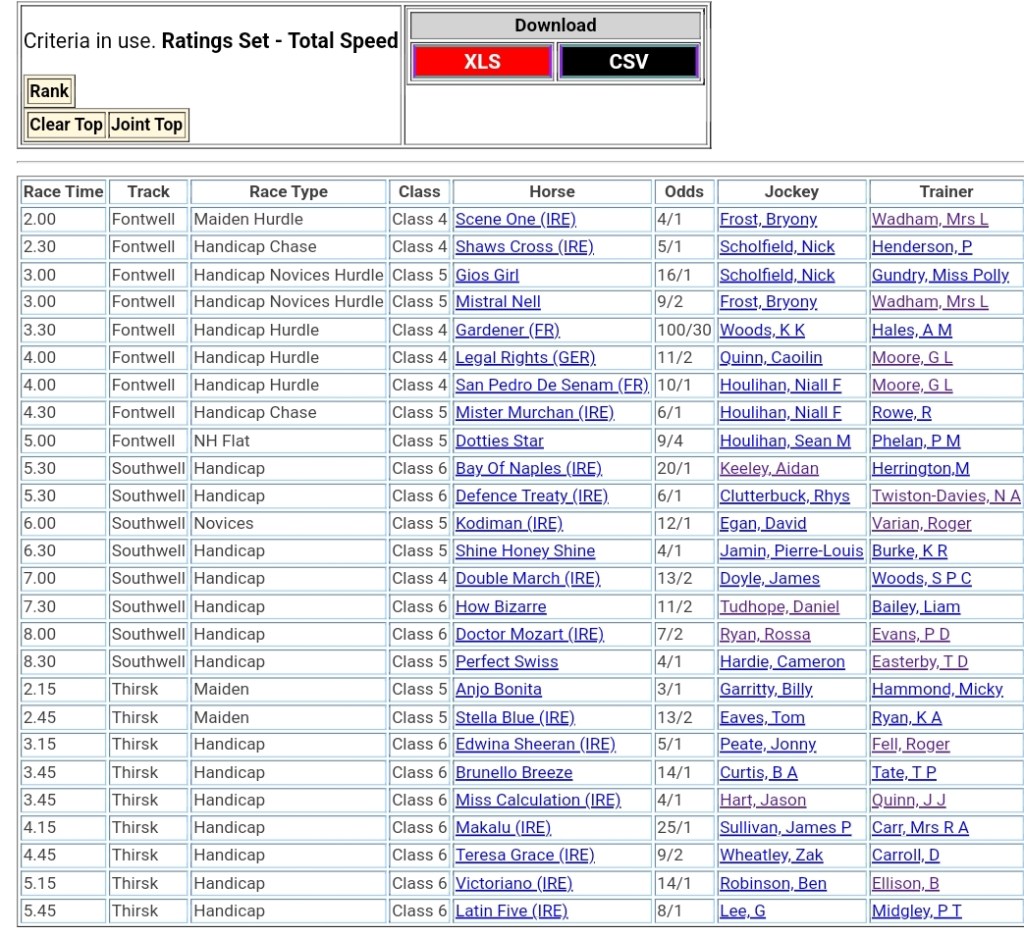 Top Speed Rated for Tuesday’s meetings ⏱️