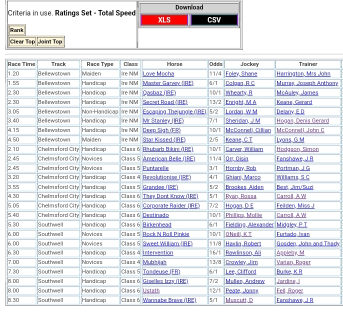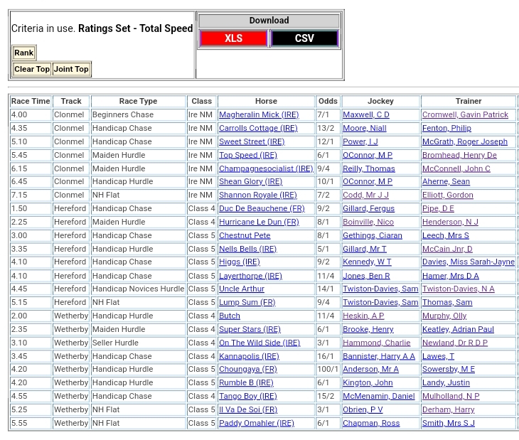Top Speed Rated for Thursday’s meetings ⏱️