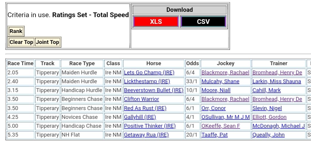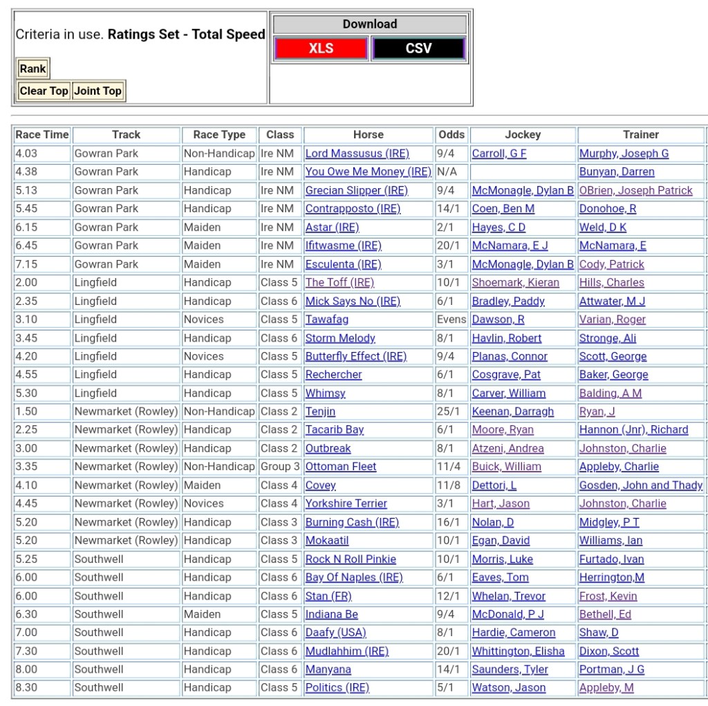 Top Speed Rated for Tuesday’s meetings ⏱️