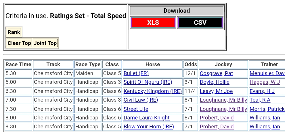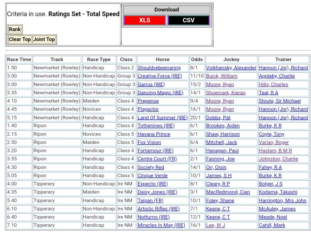 Top Speed Rated for Thursday’s meetings ⏱️