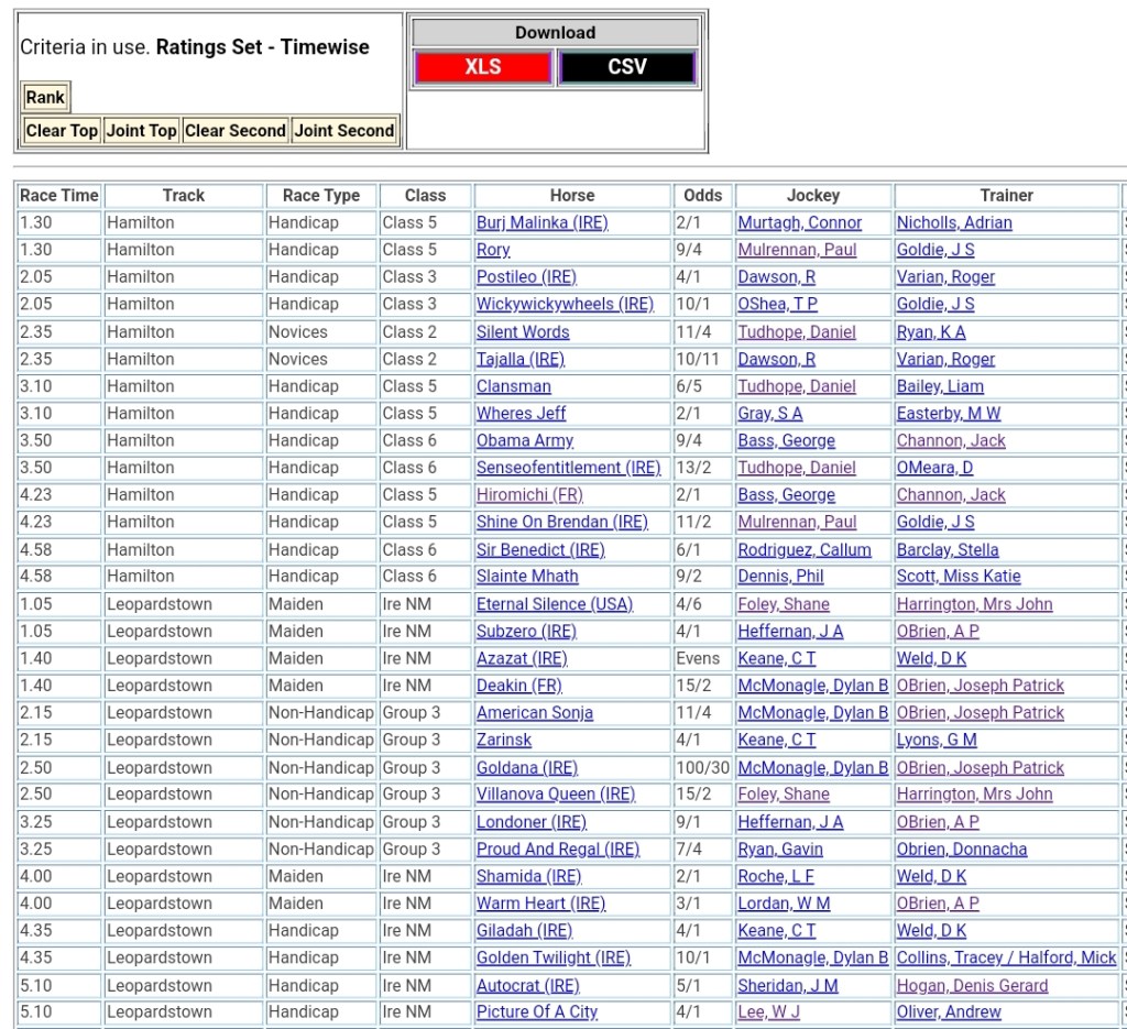 Top Two Ranked for today’s meetings đźŹ‡