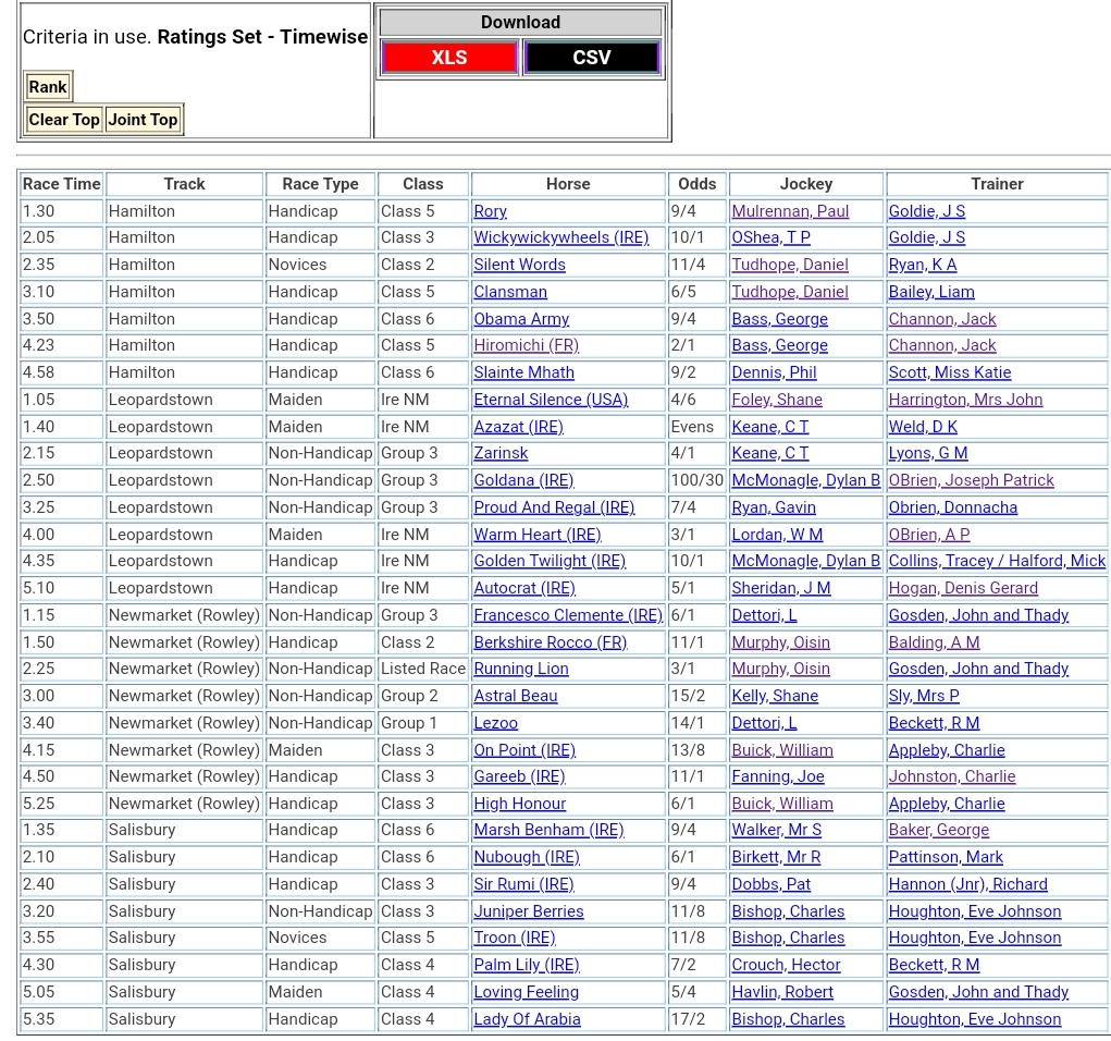 Top Speed Rated for today’s meetings ⏱️