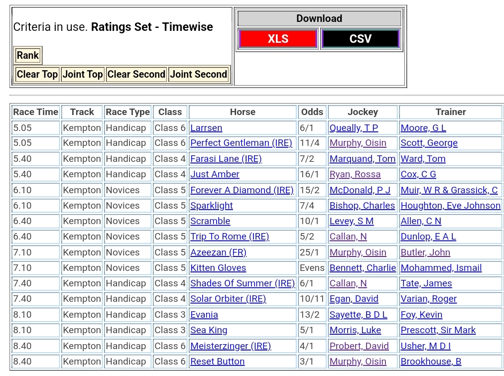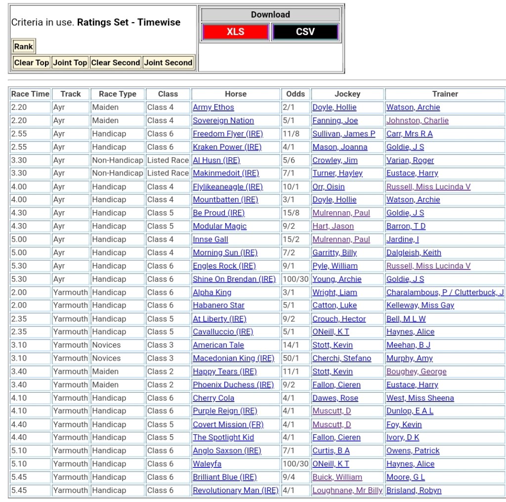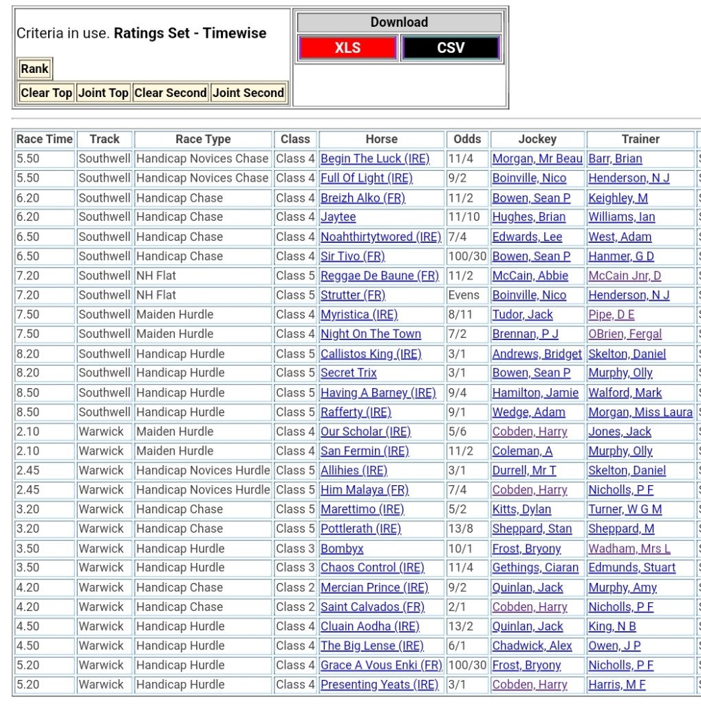 Top Two Ranked for today’s meetings đźŹ‡