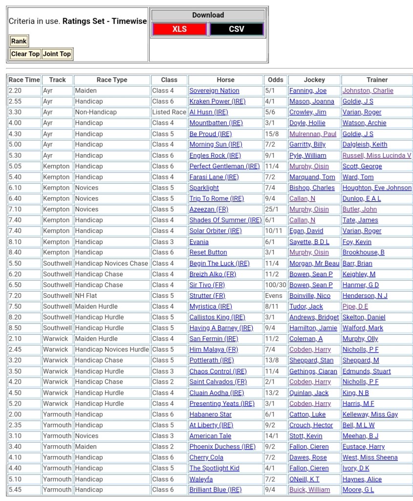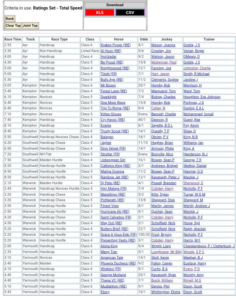 Top Speed Rated for today’s meetings ⏱️