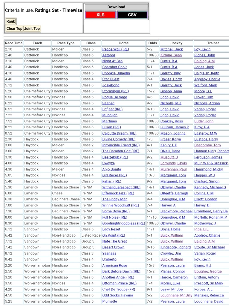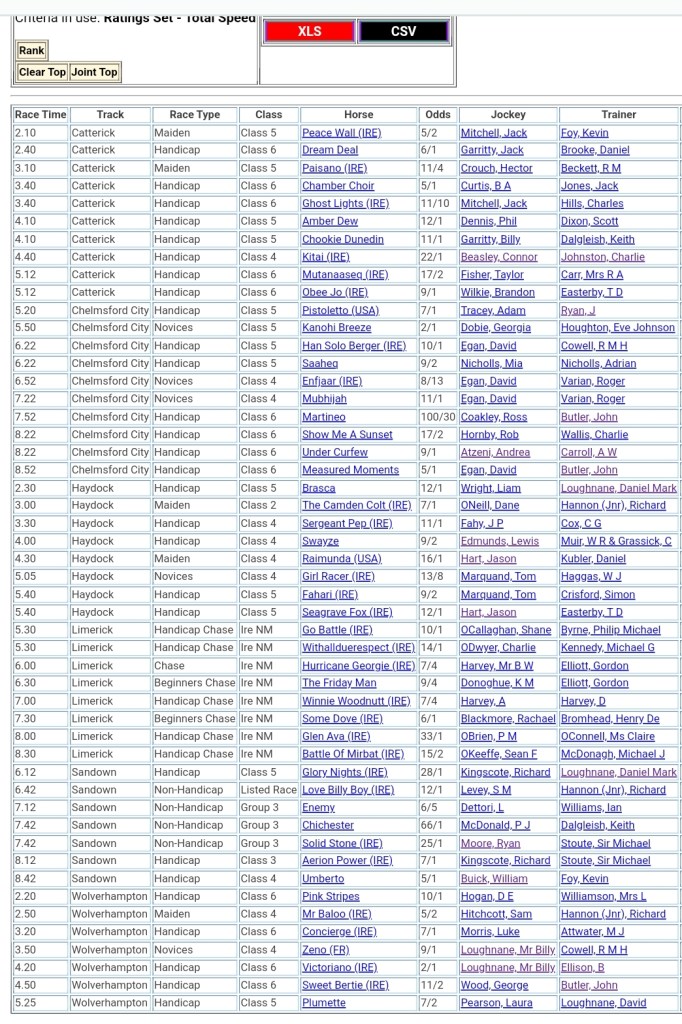 Top Speed Rated for today’s meetings ⏱️