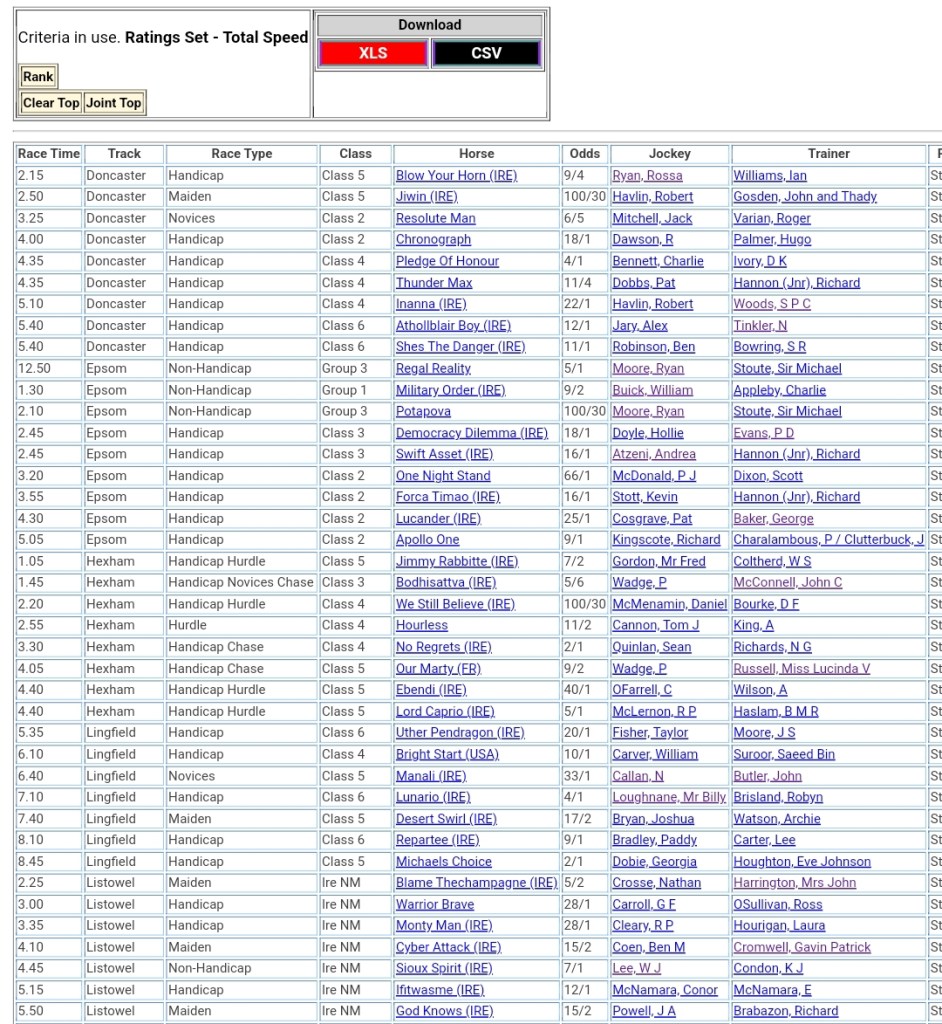 Top Speed Rated for today’s meetings ⏱️