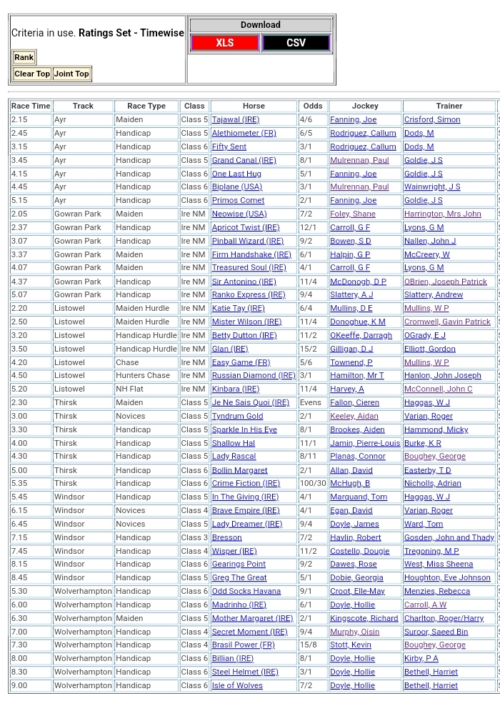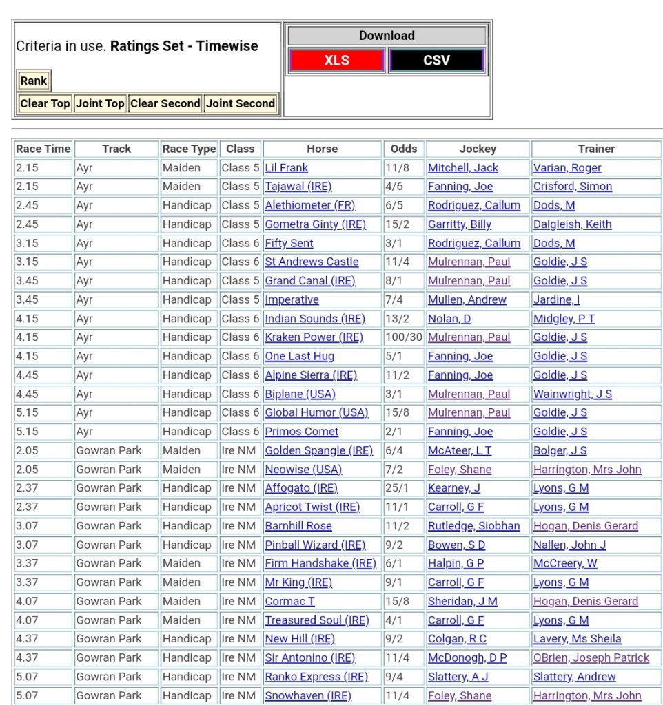 Top Two Ranked for today’s meetings đźŹ‡