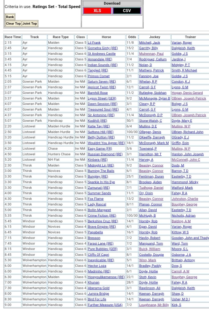 Top Speed Rated for today’s meetings ⏱️