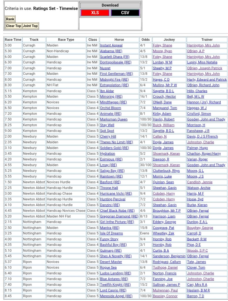 Top Ranked for today’s meetings 🏇