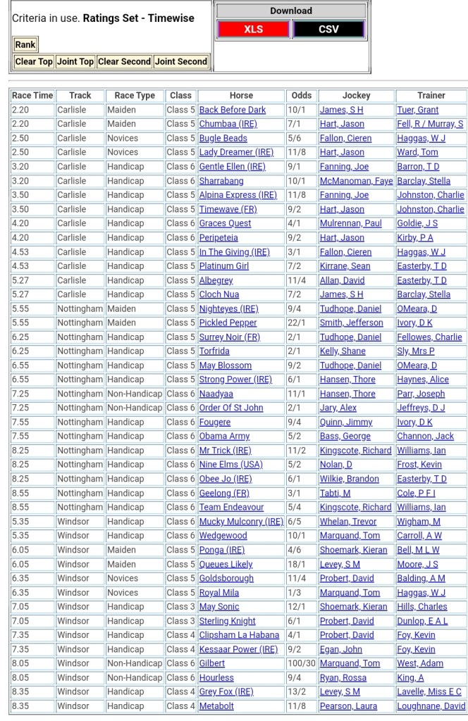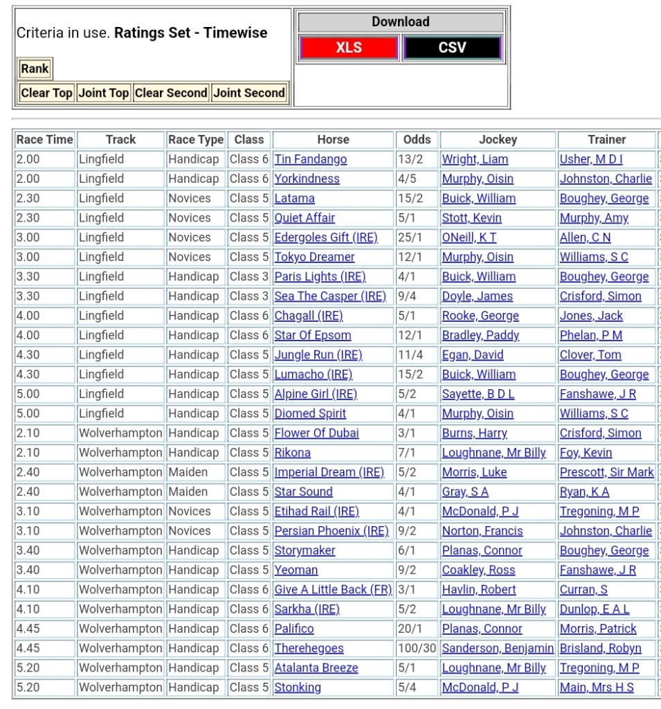 Top Two Ranked for today’s meetings đźŹ‡