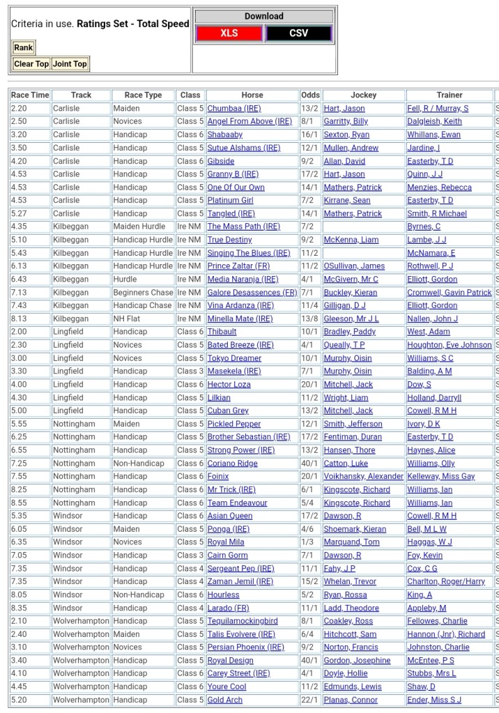 Top Speed Rated for today’s meetings ⏱️