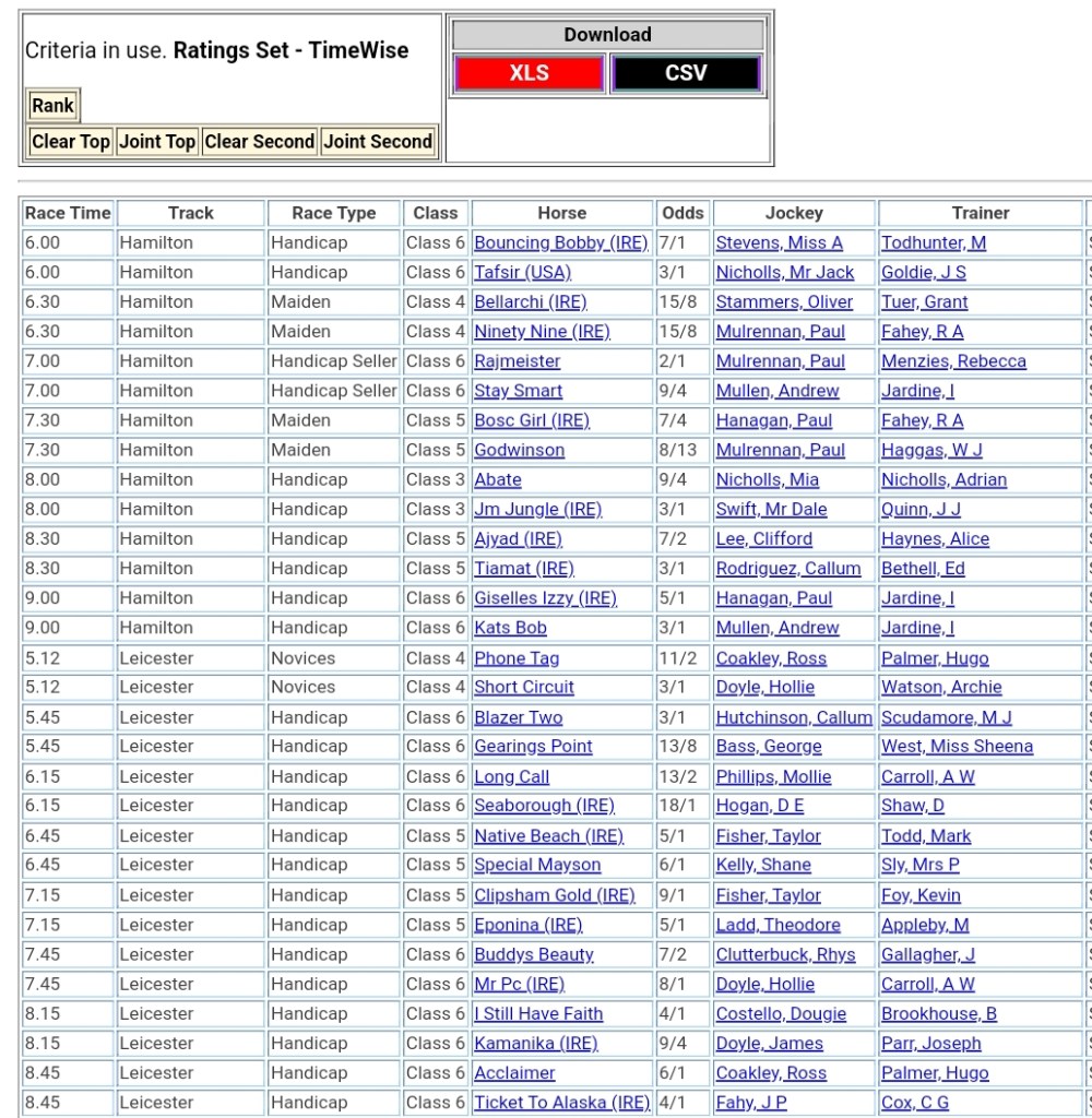 Top Two Ranked for today’s meetings đźŹ‡