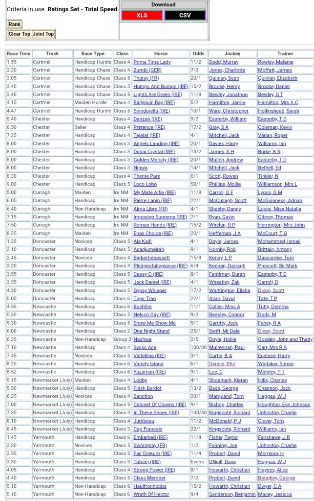 Top Speed Rated for today’s meetings ⏱️⤵️
