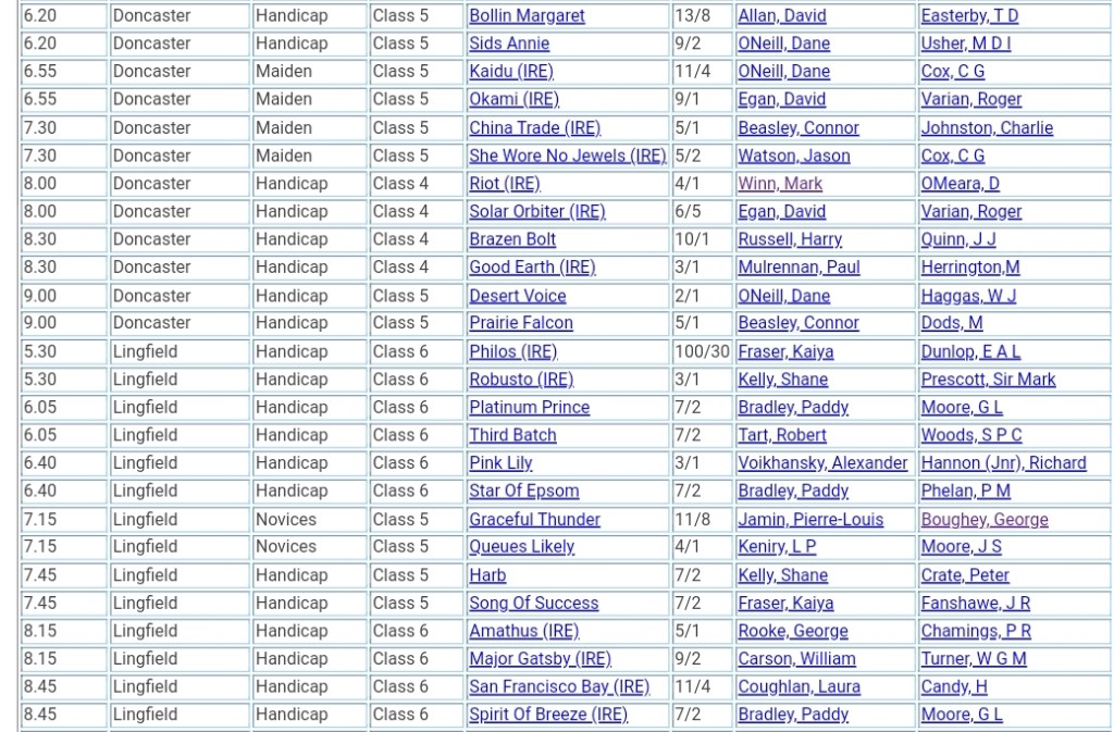 Doncaster & Lingfield ⤴️