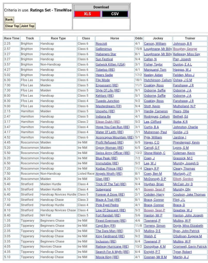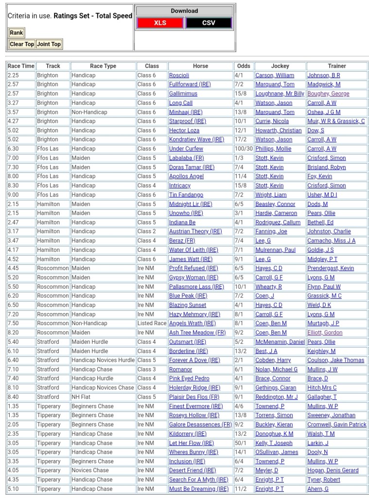 Top Speed Rated for today’s meetings ⏱️⤵️