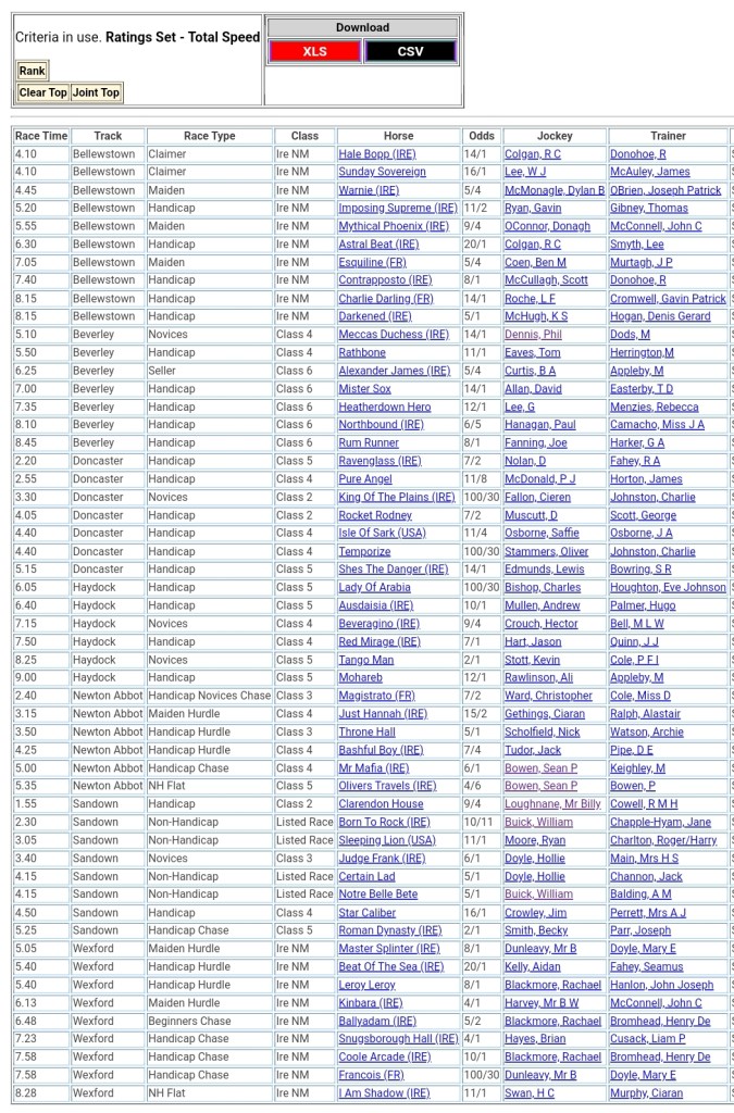 Top Speed Rated for today’s meetings ⏱️⤵️