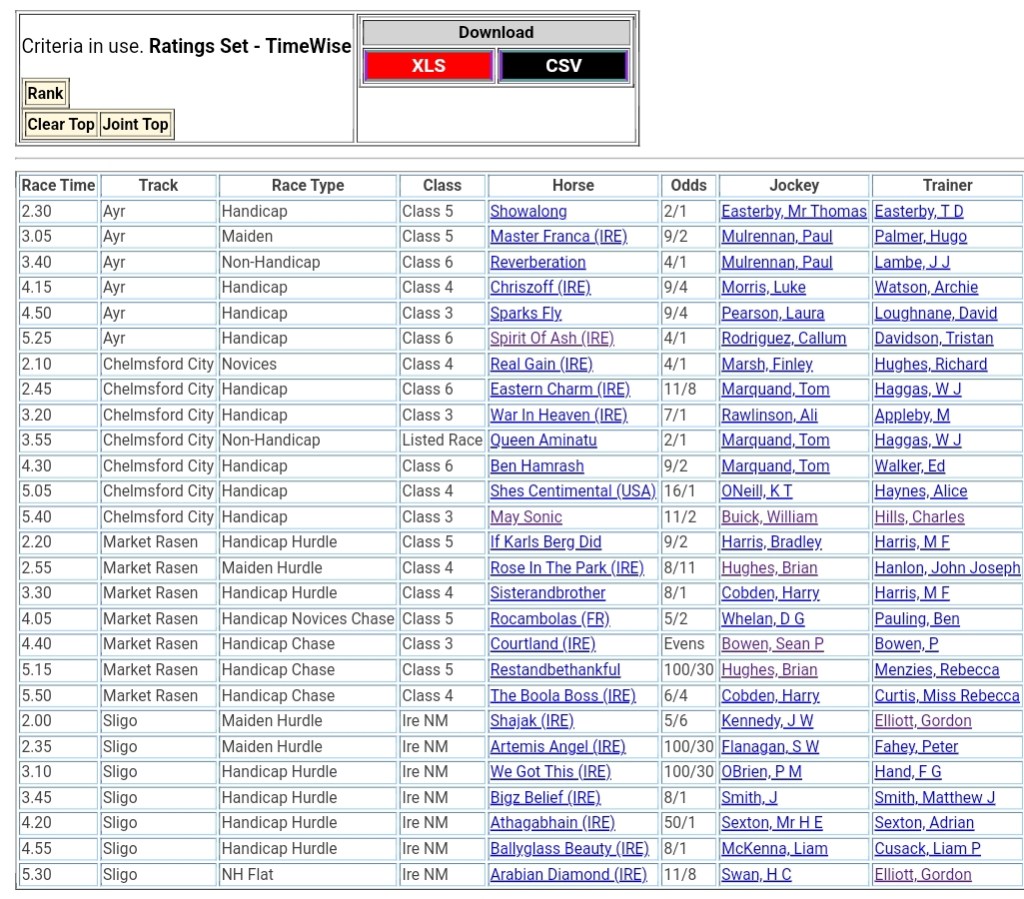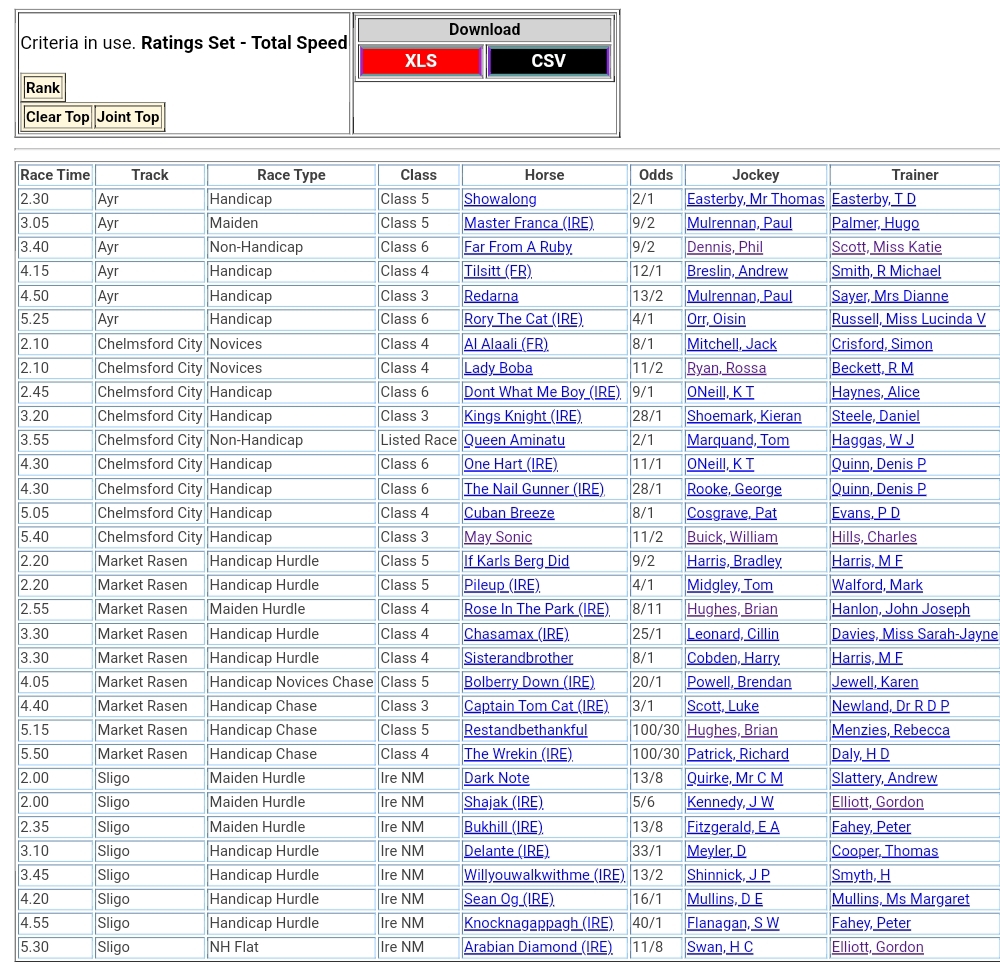 Top Speed Rated for today’s meetings ⏱️⤵️
