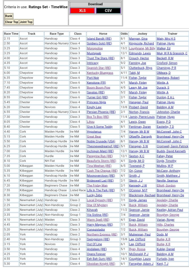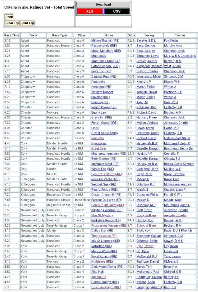 Top Speed Rated for today’s meetings ⏱️⤵️