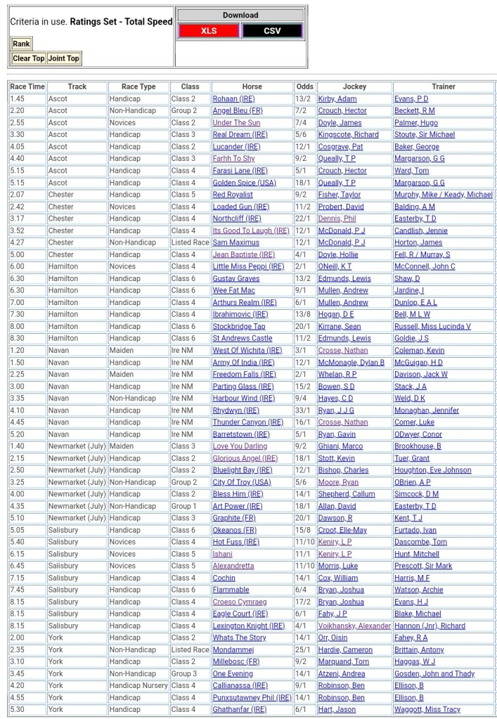 Top Speed Rated for today’s meetings ⏱️👇