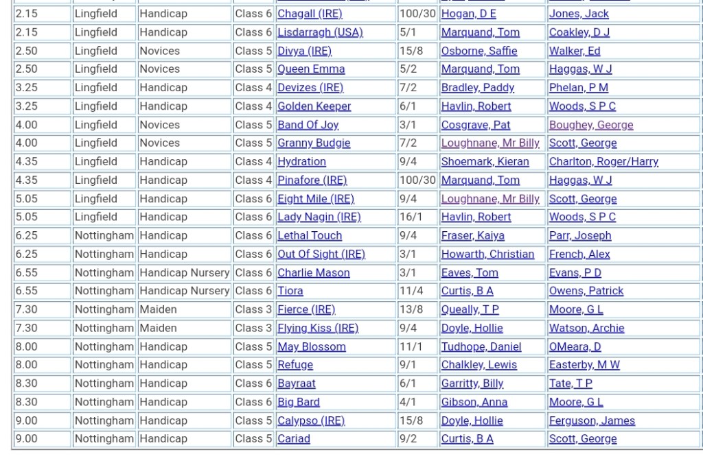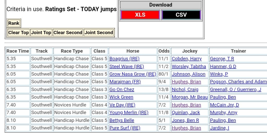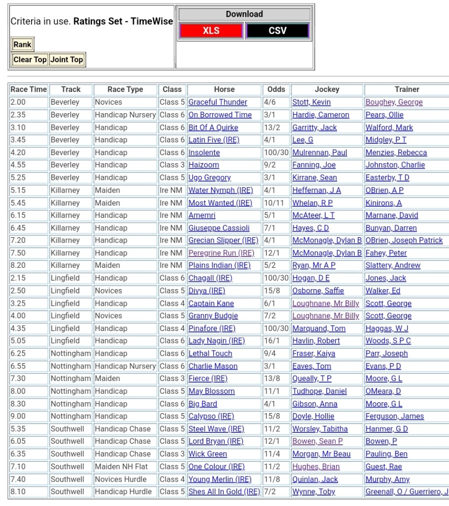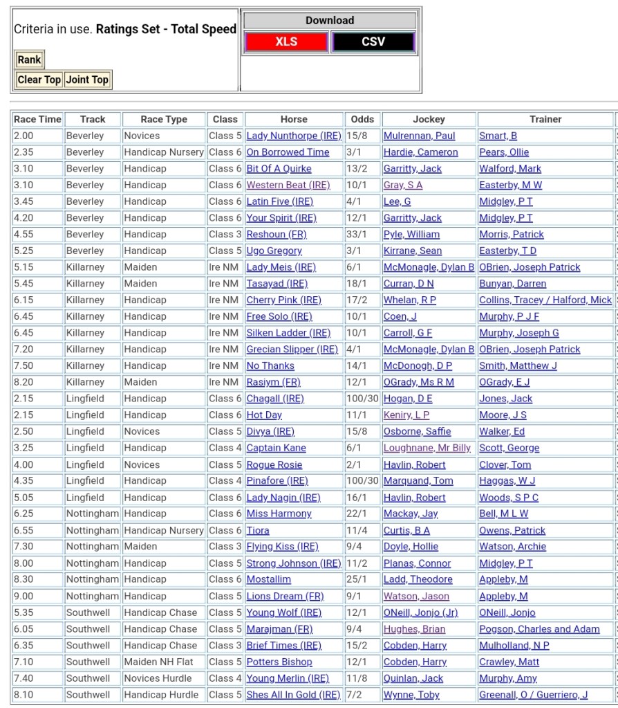 Top Speed Rated for today’s meetings ⏱️⤵️