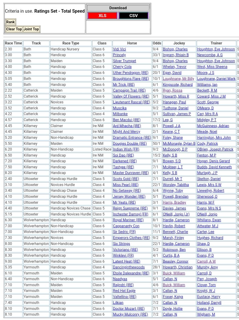 Top Speed Rated for today’s meetings ⏱️⤵️