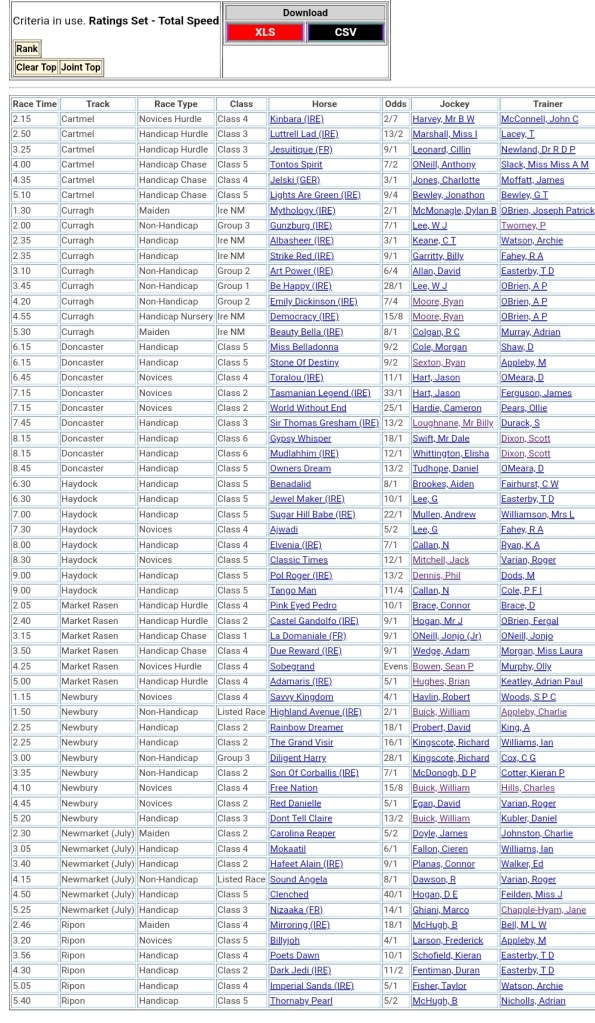 Top Speed Rated for today’s meetings ⏱️⤴️