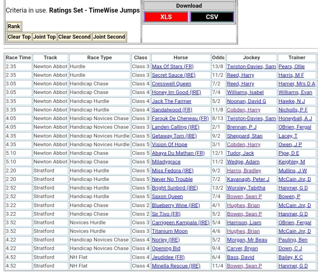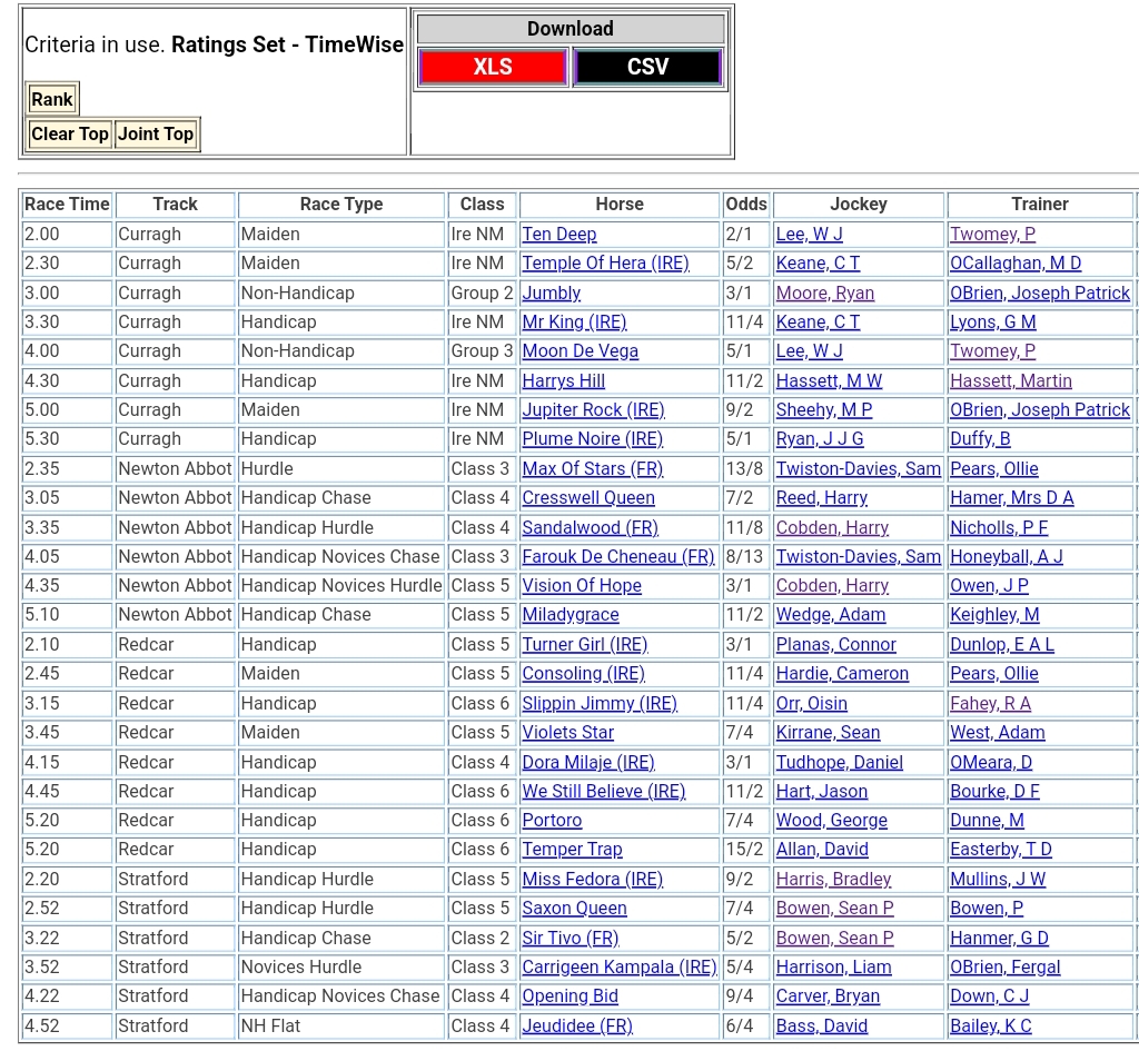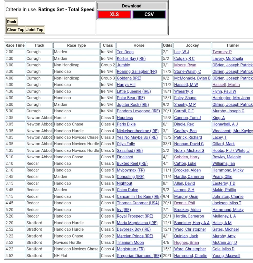 Top Speed Rated for today’s meetings ⏱️⤵️
