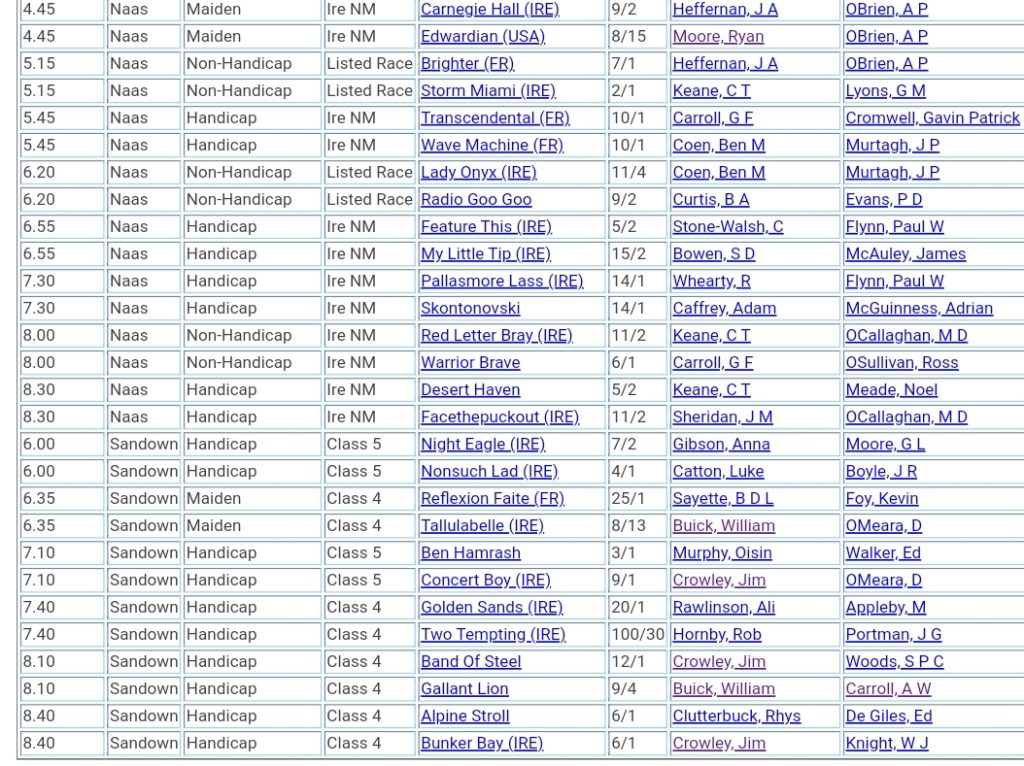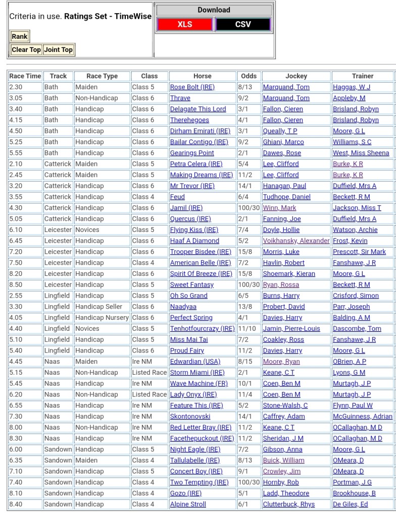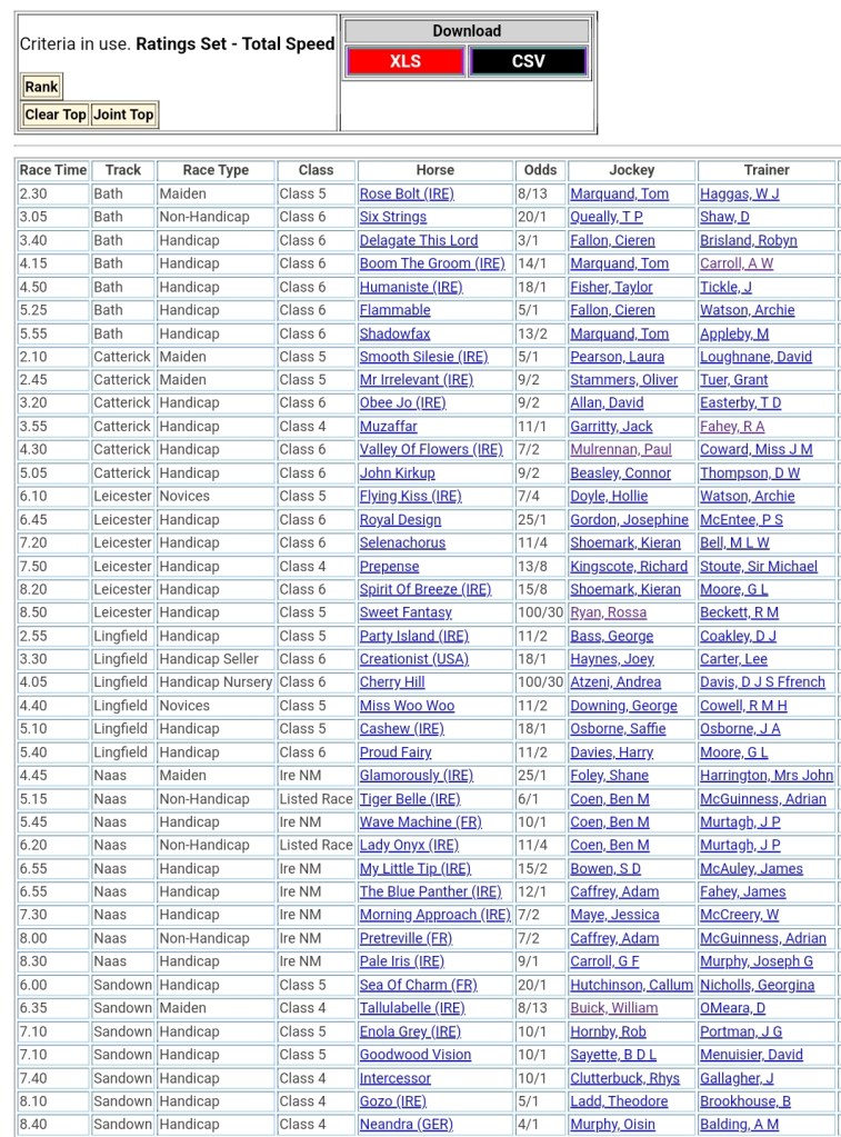 Top Speed Rated for today’s meetings ⏱️⤵️