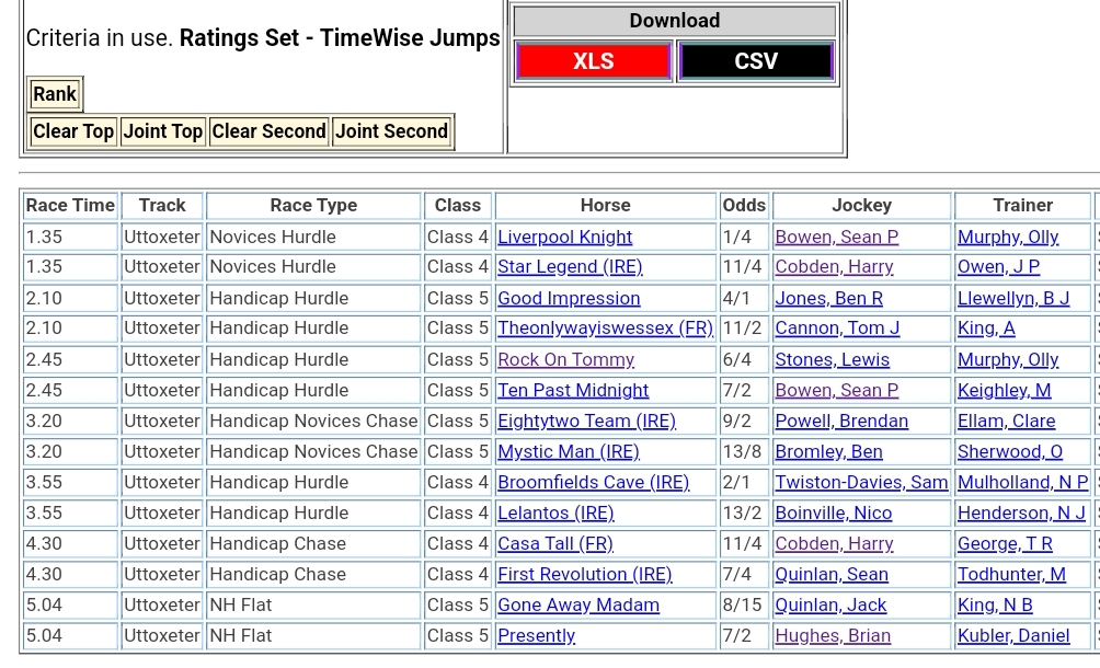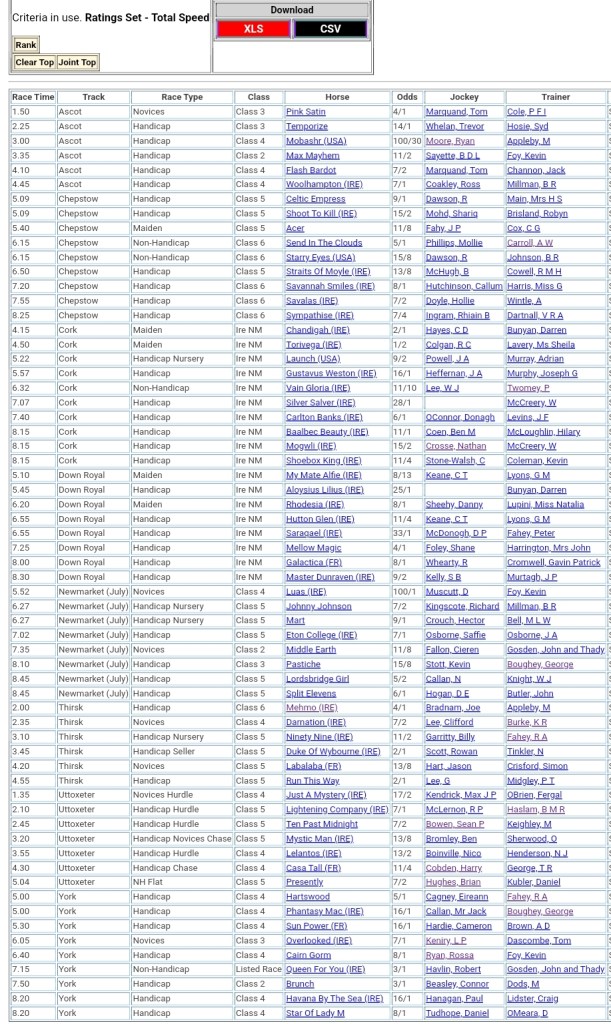 Top Speed Rated for today’s meetings ⏱️⤵️