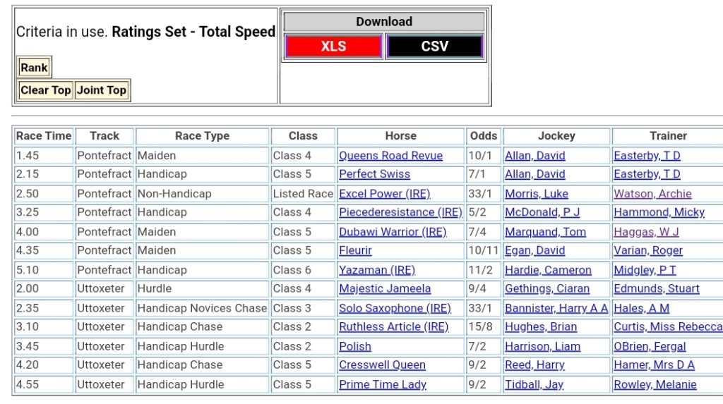 Top Speed Rated for today’s meetings ⏱️⤵️
