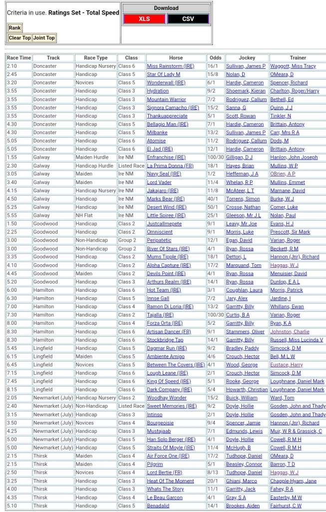 Top Speed Rated for today’s meetings ⏱️⤵️