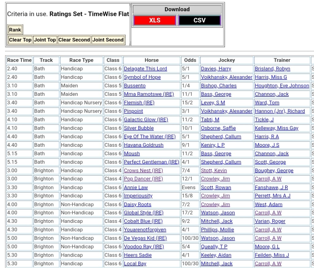 Top Speed Rated for today’s meetings ⏱️⤵️