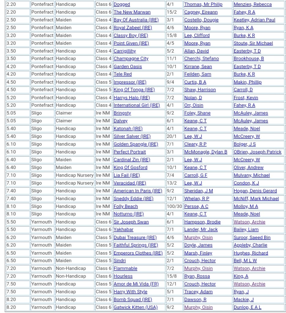 Pontefract, Sligo & Yarmouth (Flat) ⤴️