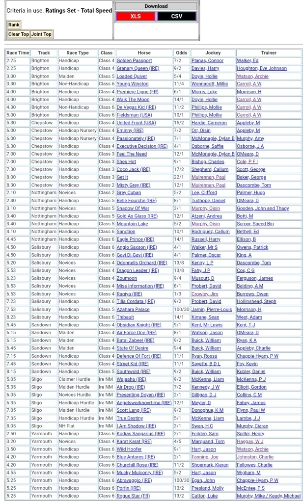 Top Speed Rated for today’s meetings ⏱️⤵️