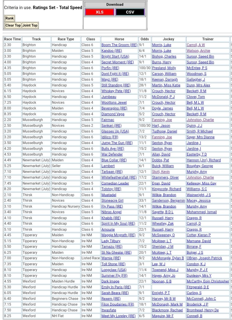 Top Speed Rated for today’s meetings ⏱️⤵️