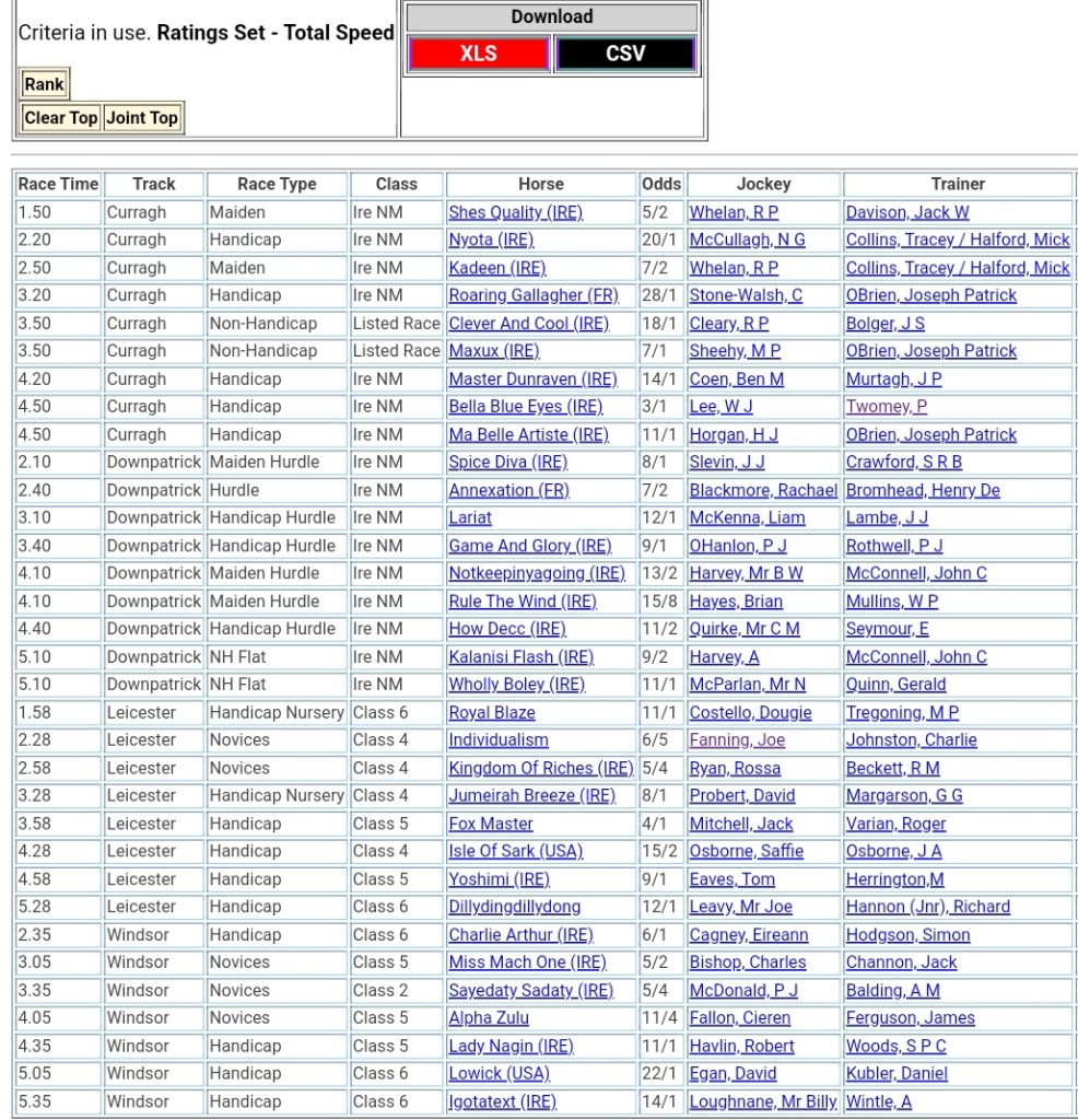 Top Speed Rated for today’s meetings ⏱️⤴️