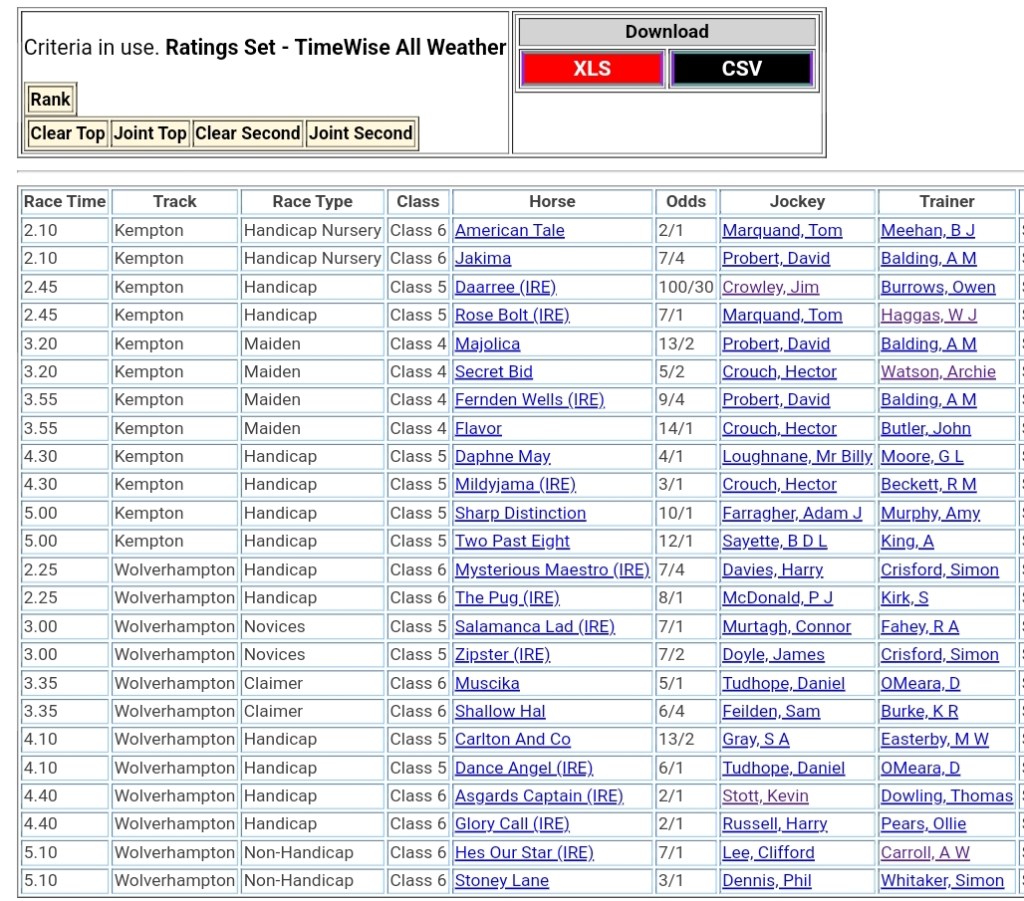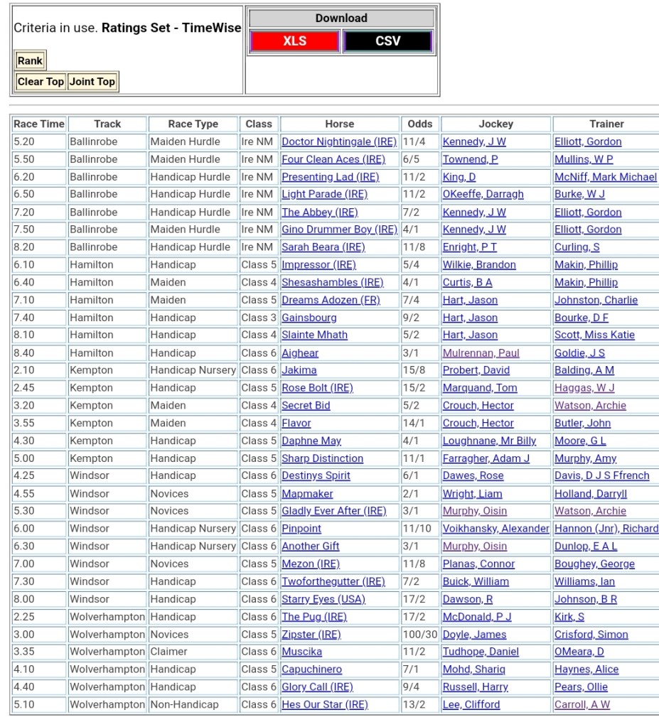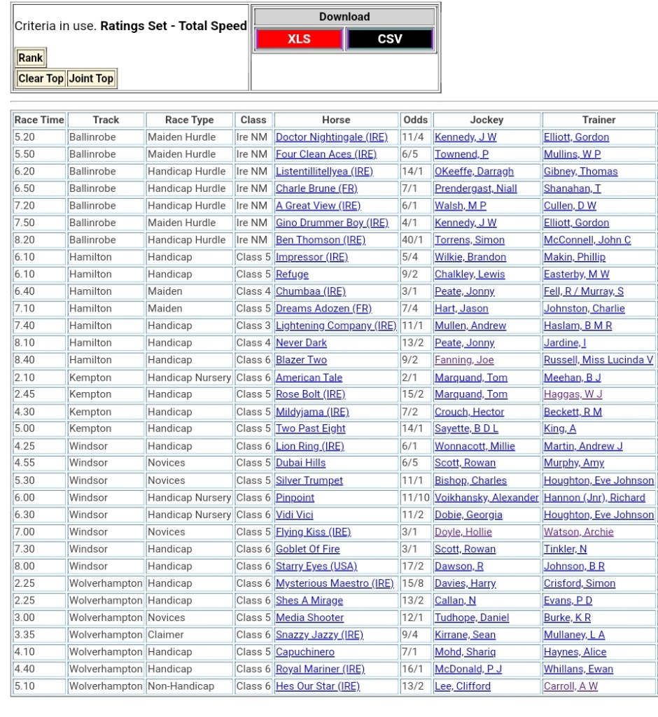Top Speed Rated for today’s meetings ⏱️⤵️