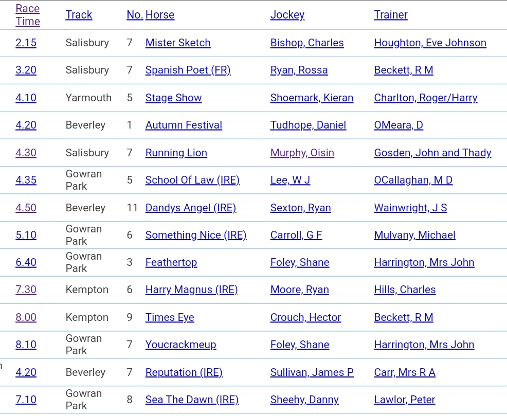 | Wed 16th Aug 2023 4.20 Beverley (11 runners) Jill Willows Handicap 7½f |