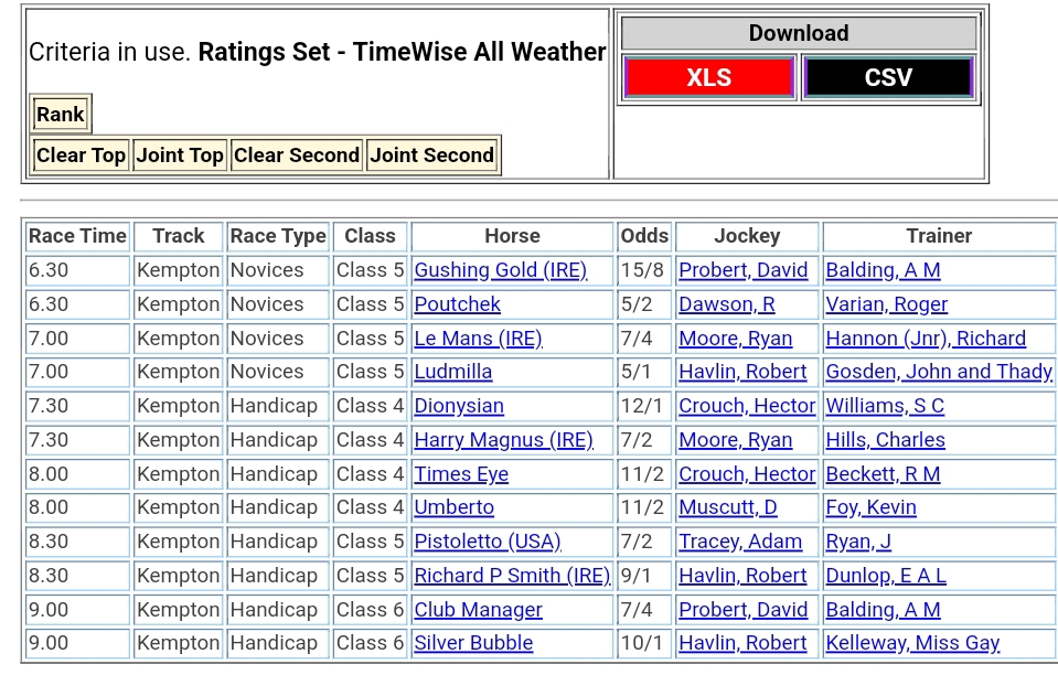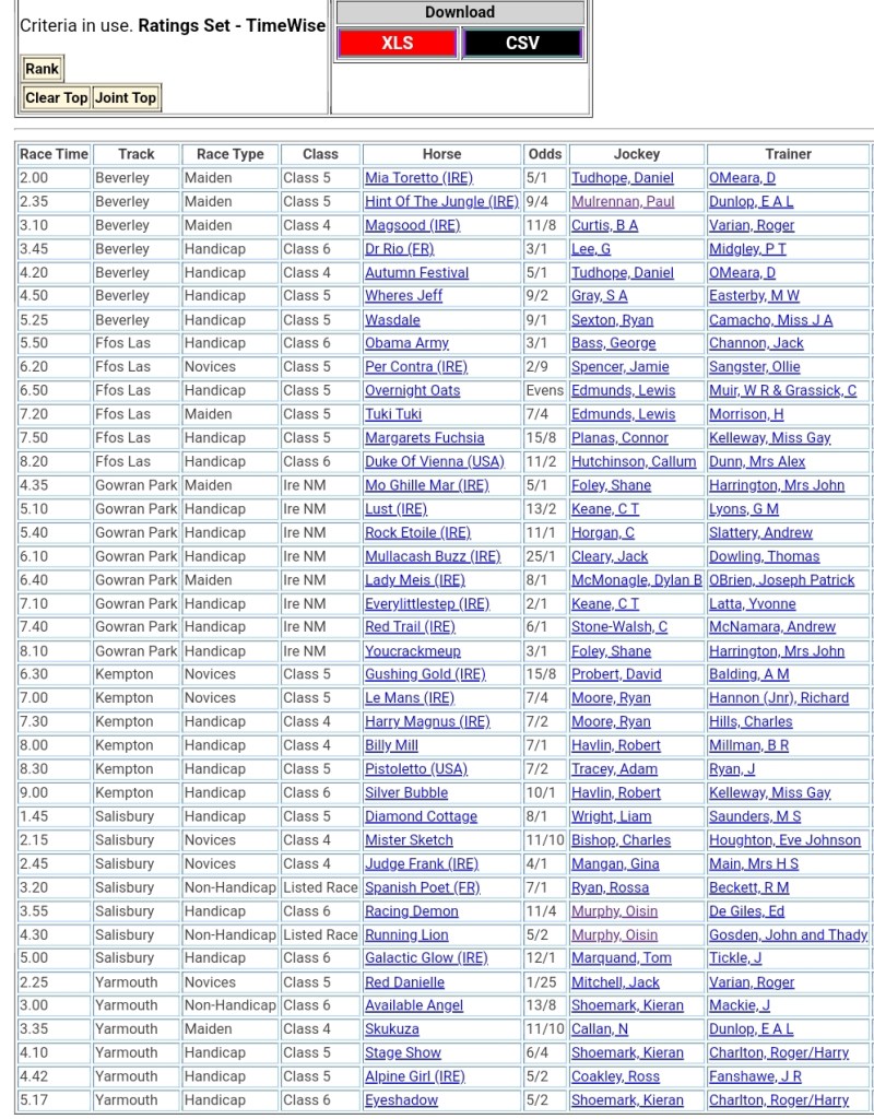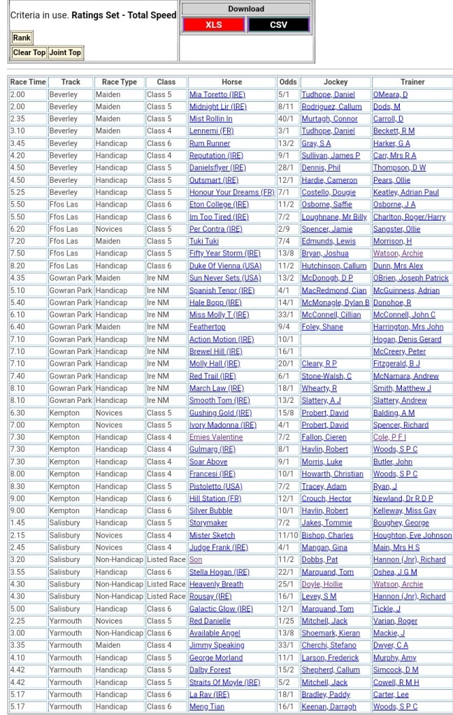 Top Speed Rated for today’s meetings ⏱️⤵️