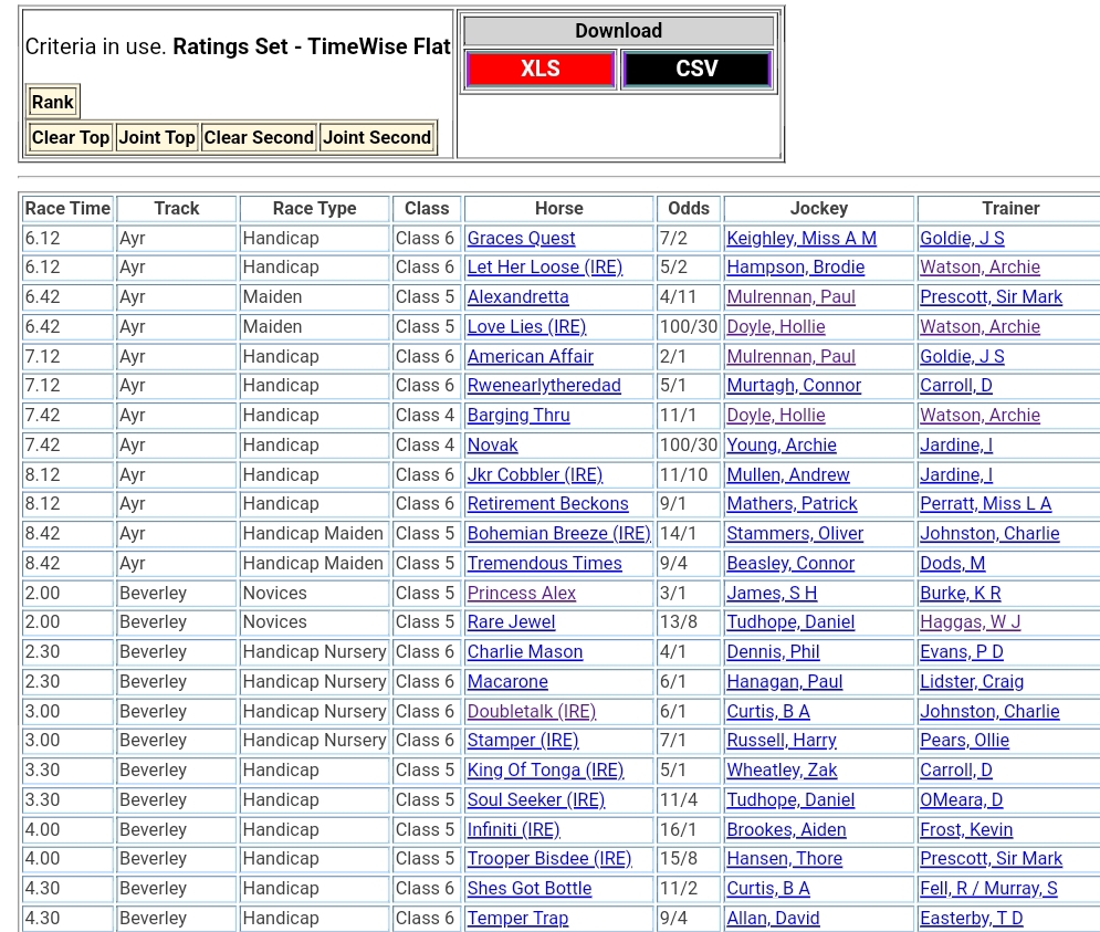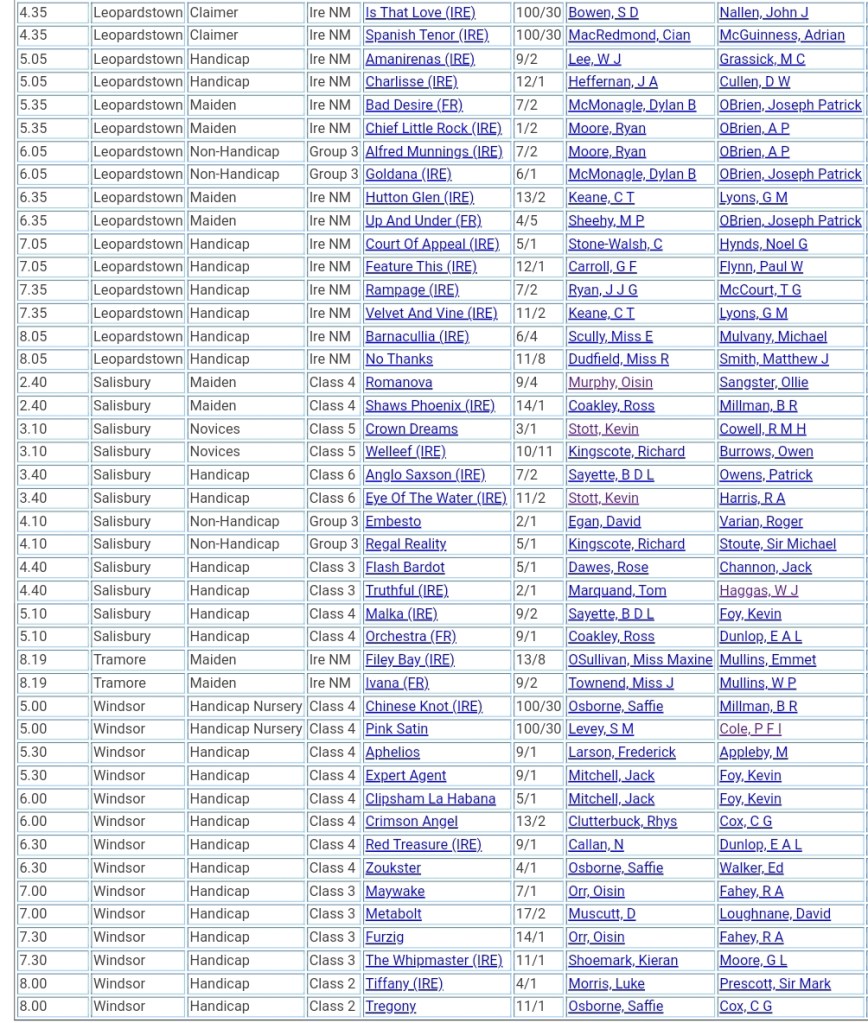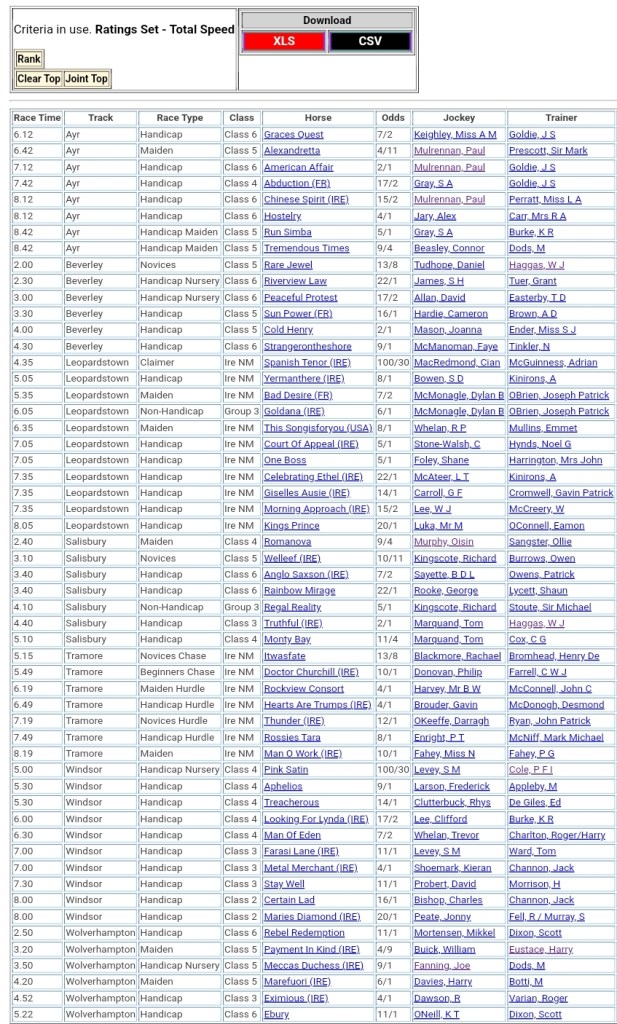 Top Speed Rated for today’s meetings ⏱️⤵️